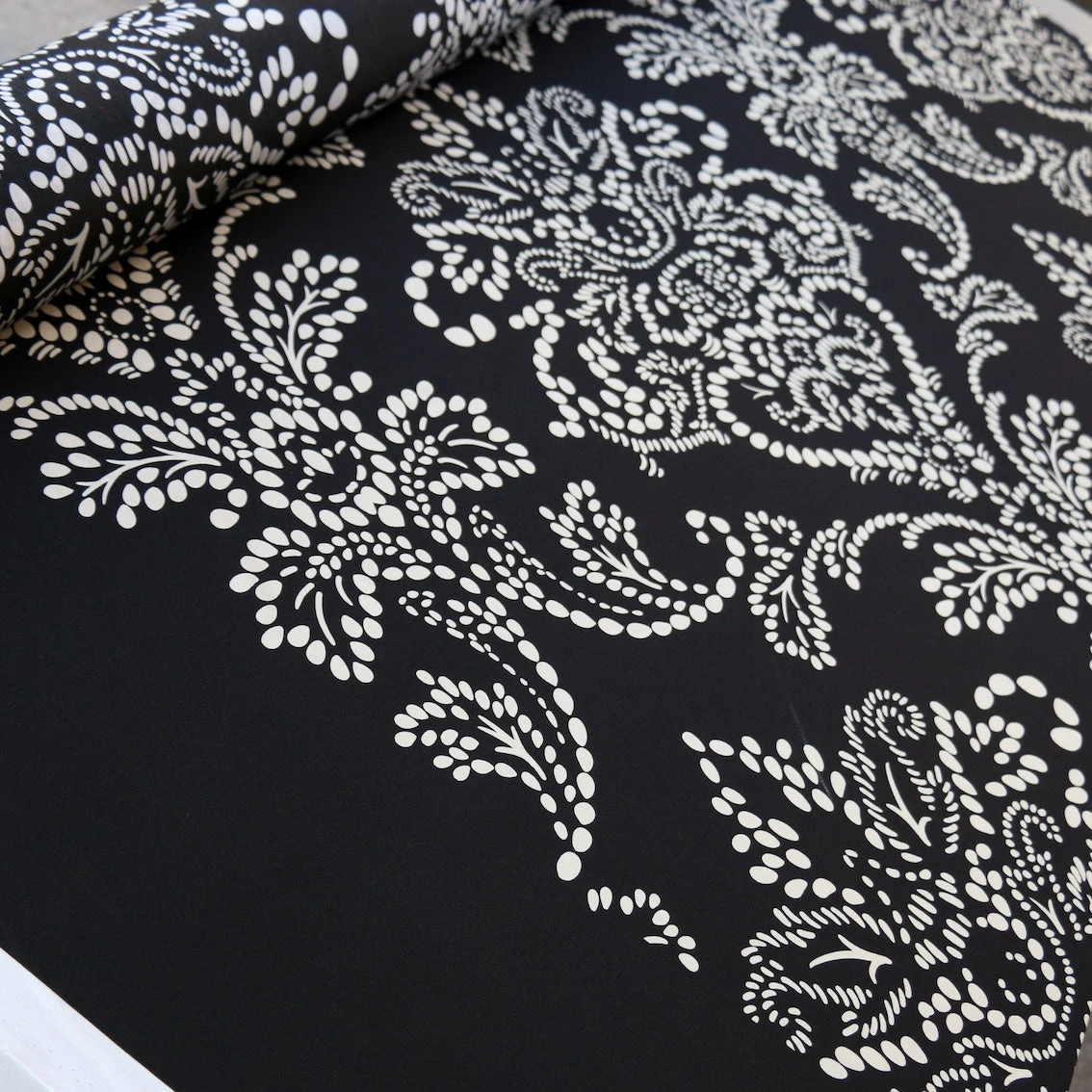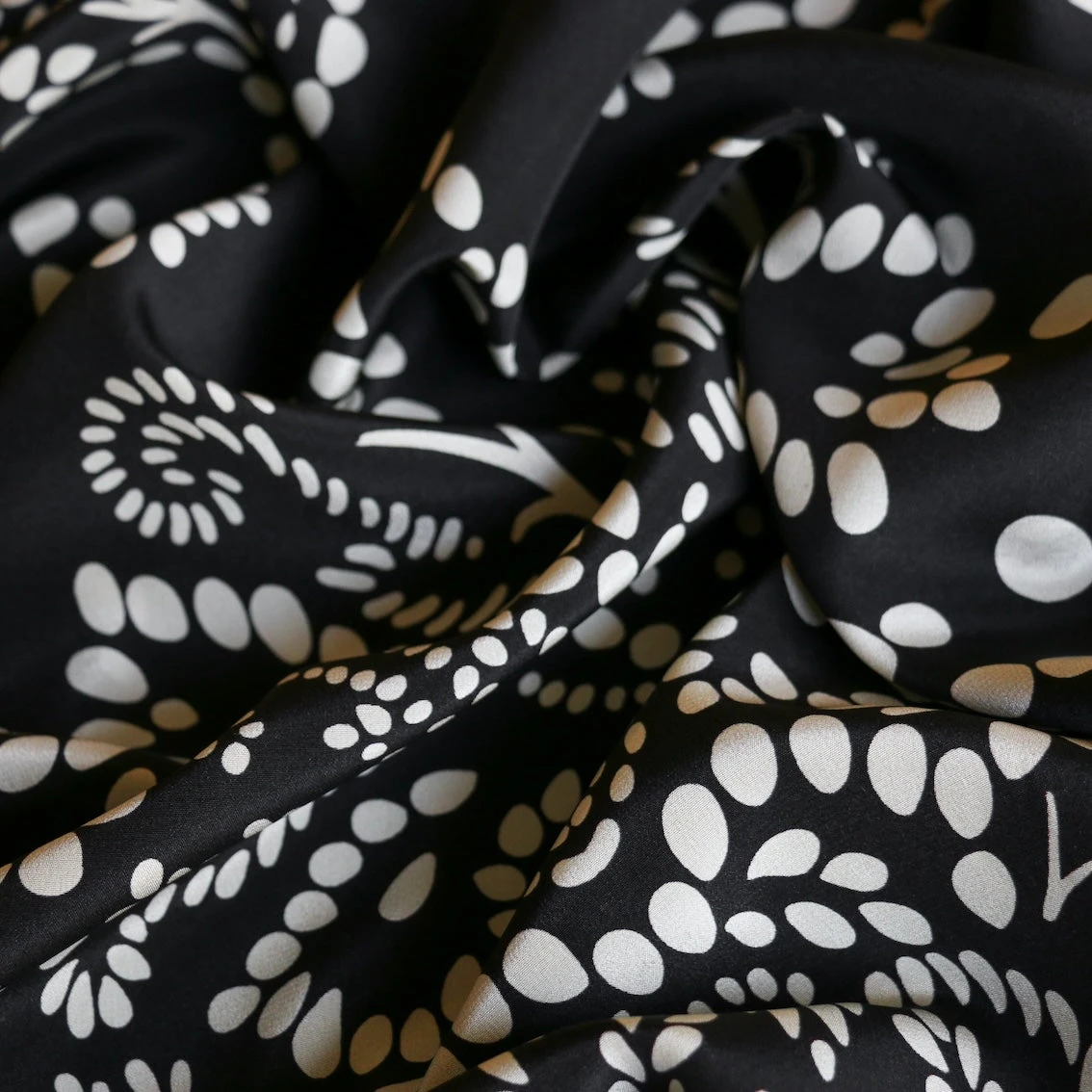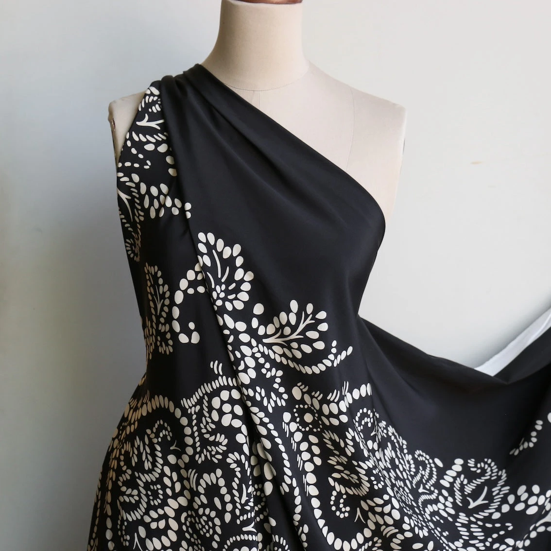 Italian designer black/off-white spot with black border printed on one selvedge edge 100% silk crepe de chine