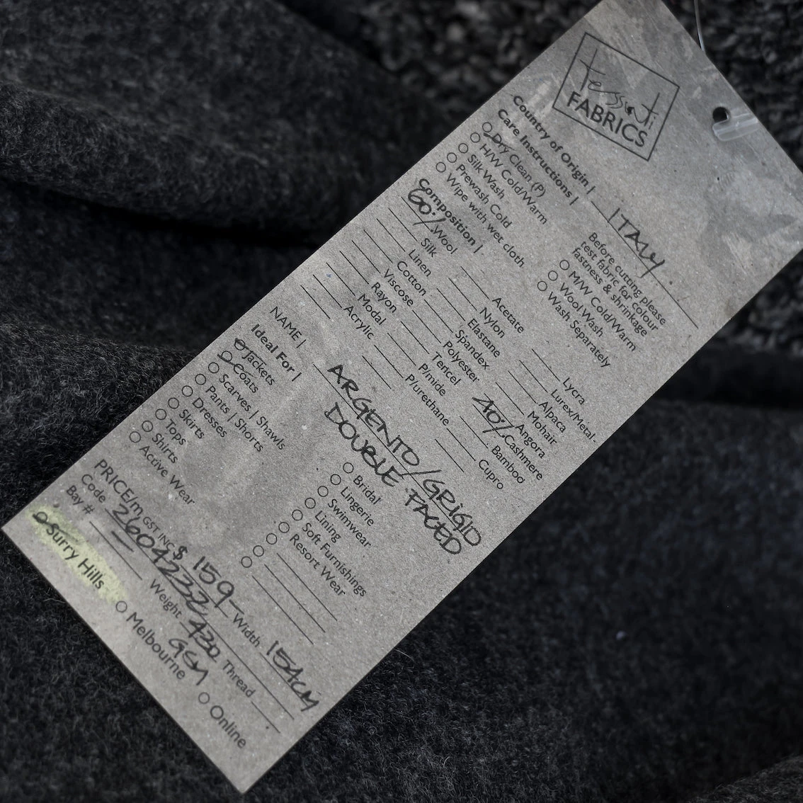 Italian charcoal/grey 60% wool 40% cashmere double faced plush coating