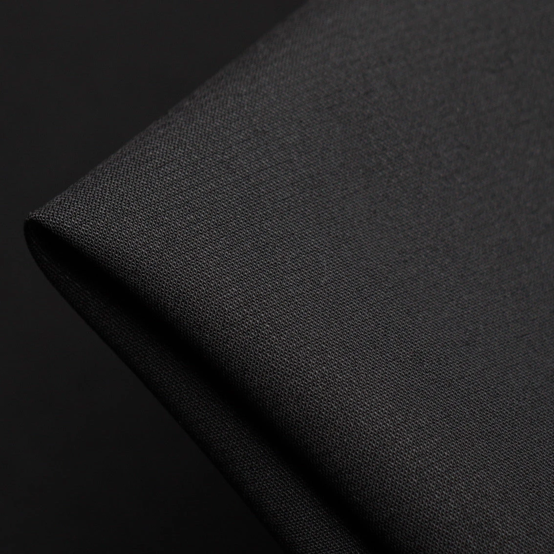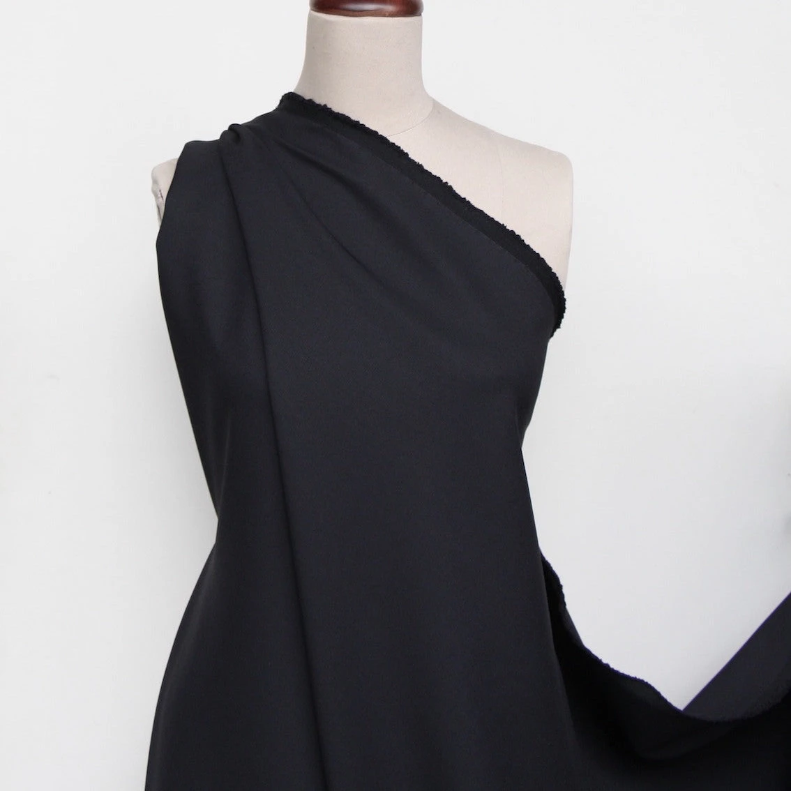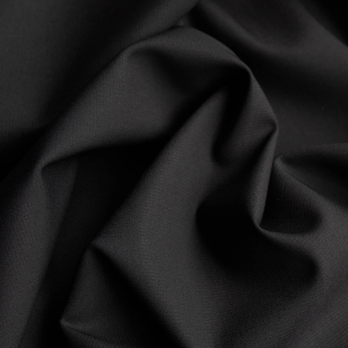 Black 90% wool 10% elastane stretch woven gaberdine with sateen finish.