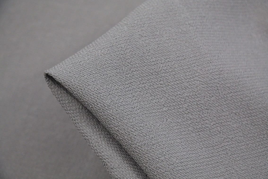 Designer end Italian mid grey 98% wool 2% elastane twisted crepe.