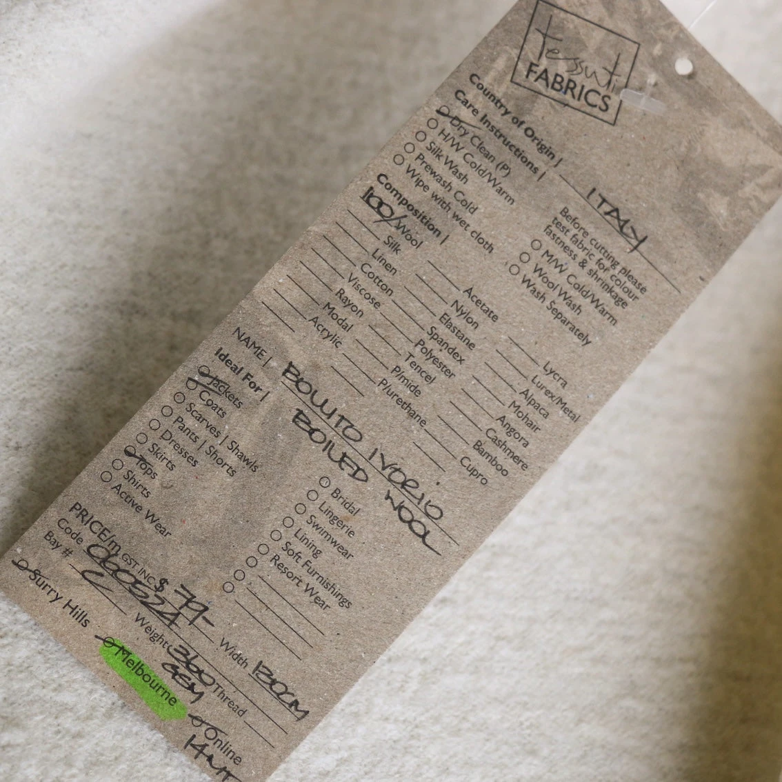 This high quality boiled wool is ideal for jackets, coats, vests etc. Perfect for our Lyon Jacket, Amara Vest, Florence Coat, Kyoto Vest, Sydney Jacket, Berlin Jacket, London Coat and Brooklyn Coat Patterns