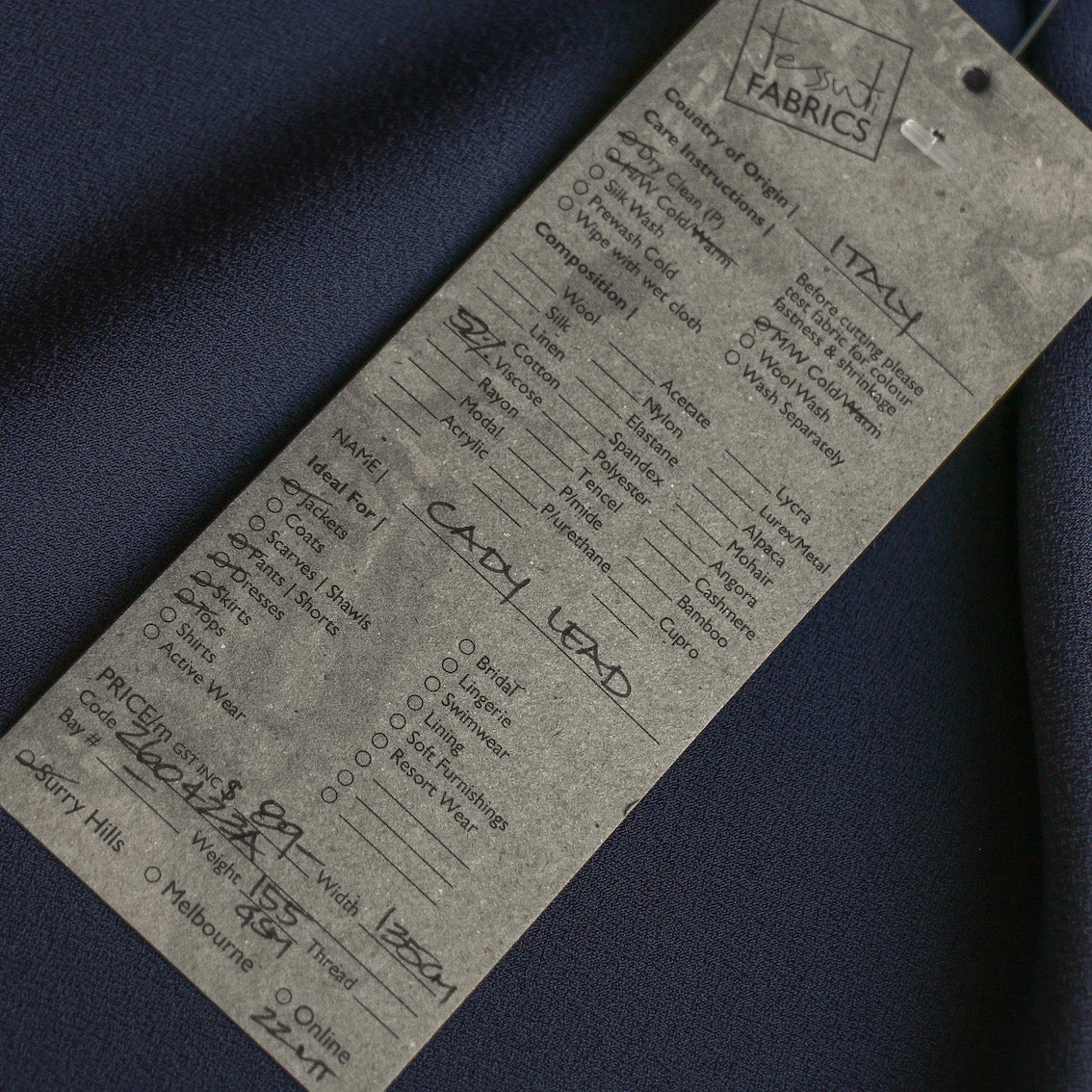 The cady crepe can be made on either matte or satin side. Perfect for our Sadie Slip Dress, Evie Bias Skirt and Chiara Pants patterns. Perfect for day or formalwear.