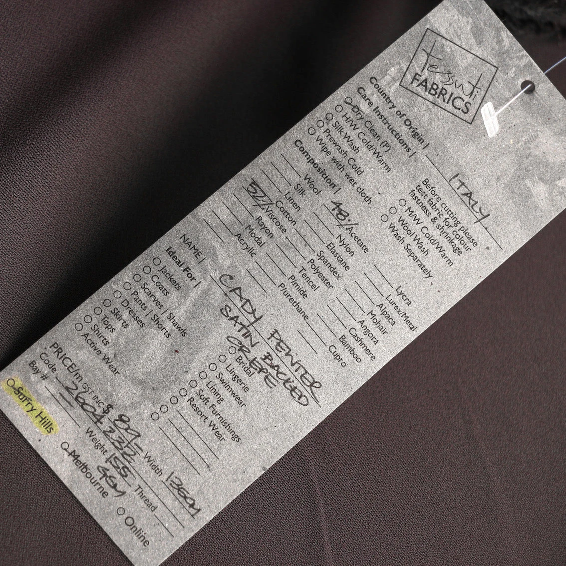 Italian pewter 52% viscose 48% acetate satin-backed crepe