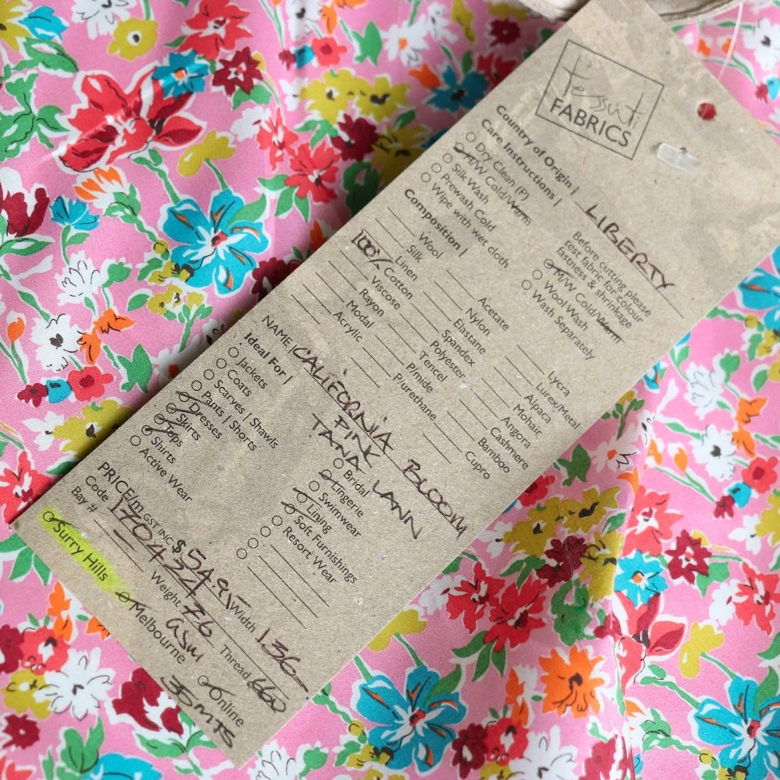 Liberty Fabrics Classics collection pink/aqua/lime/orange printed floral 100% cotton tana lawn