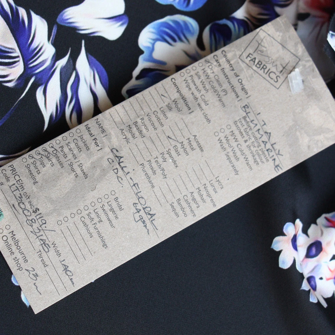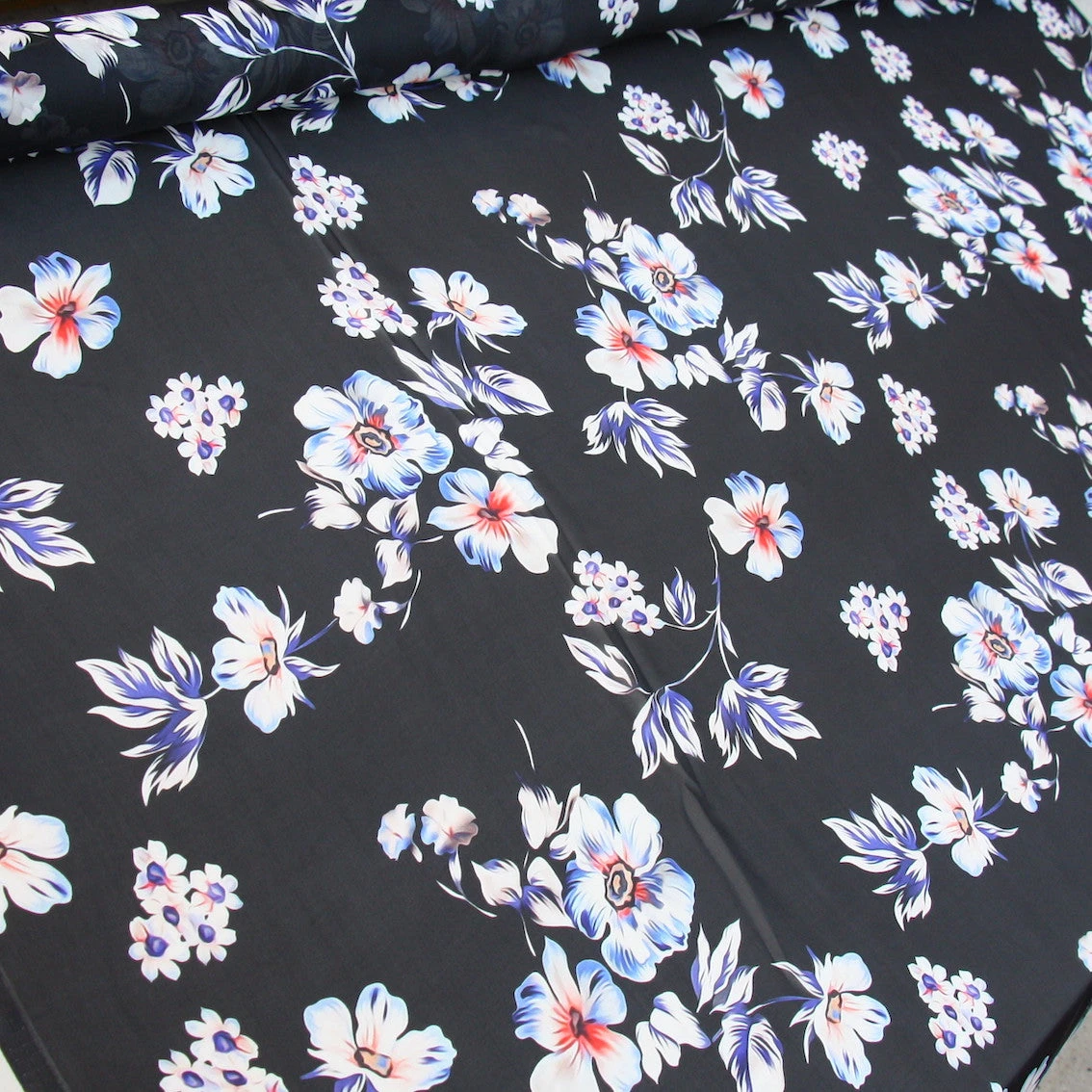 Italian designer Blumarine black/blue/red floral printed 100% silk chiffon