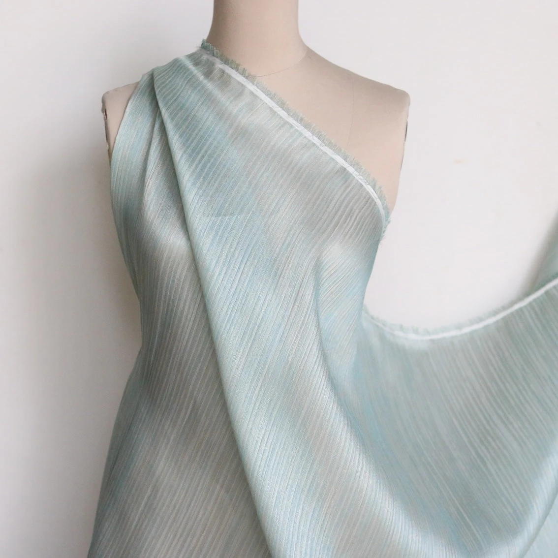 Italian designer shimmery eau denil/foam textured 100% silk organza