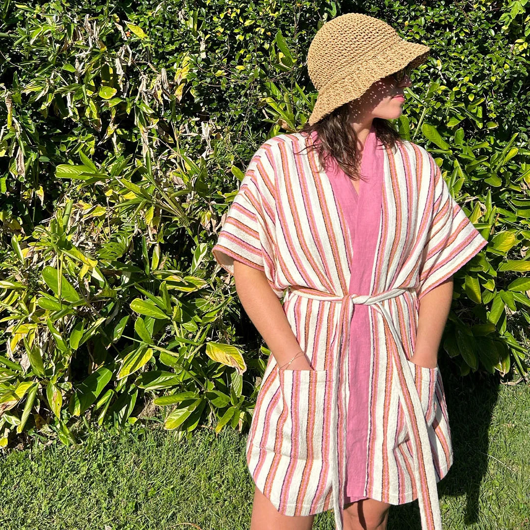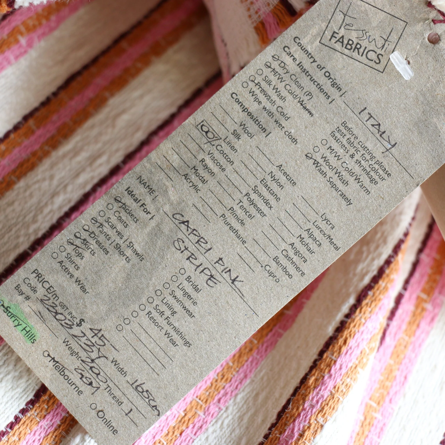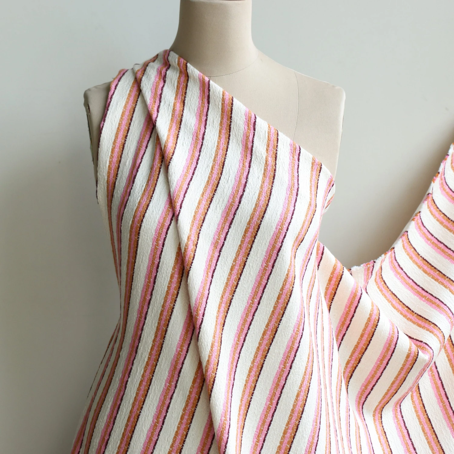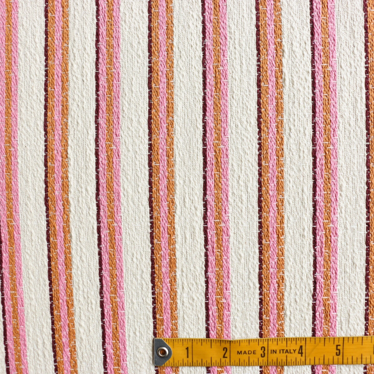 Italian ivory/pink/rust/plum striped textured 100% cotton