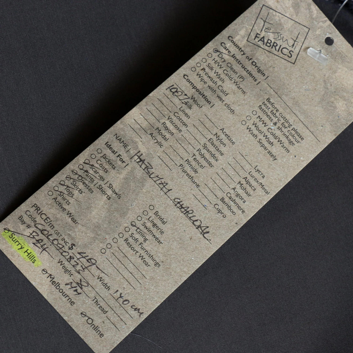If colour matching or checking weight/handle is essential, please order a sample online
