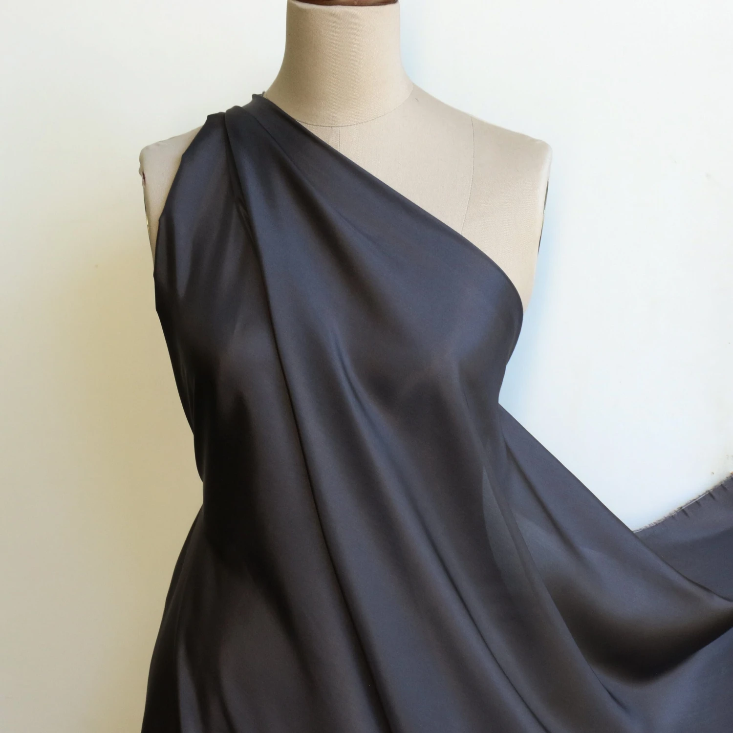 Charcoal grey 100% silk habutai