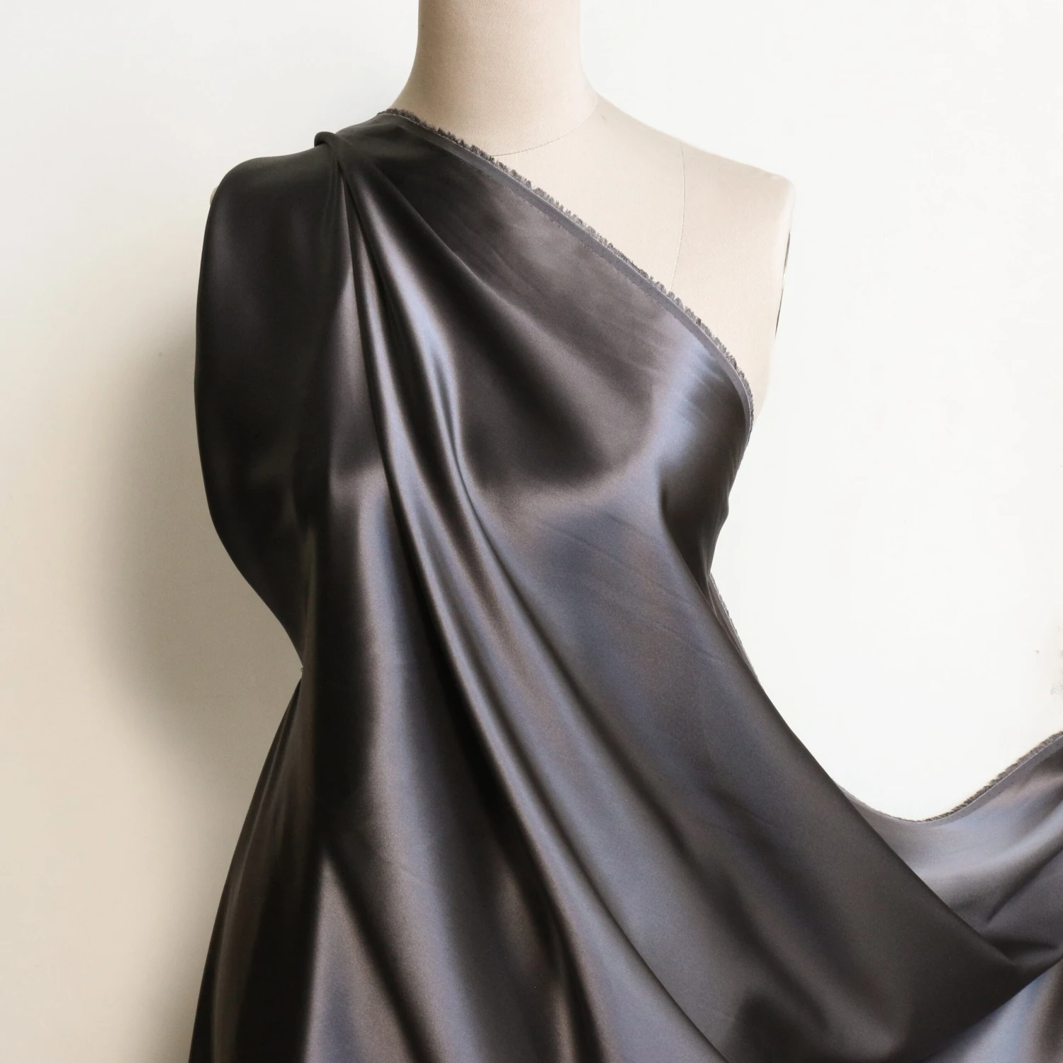 Charcoal grey 100% silk crepe satin
