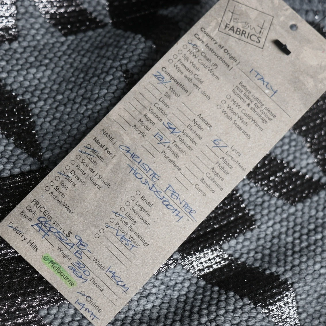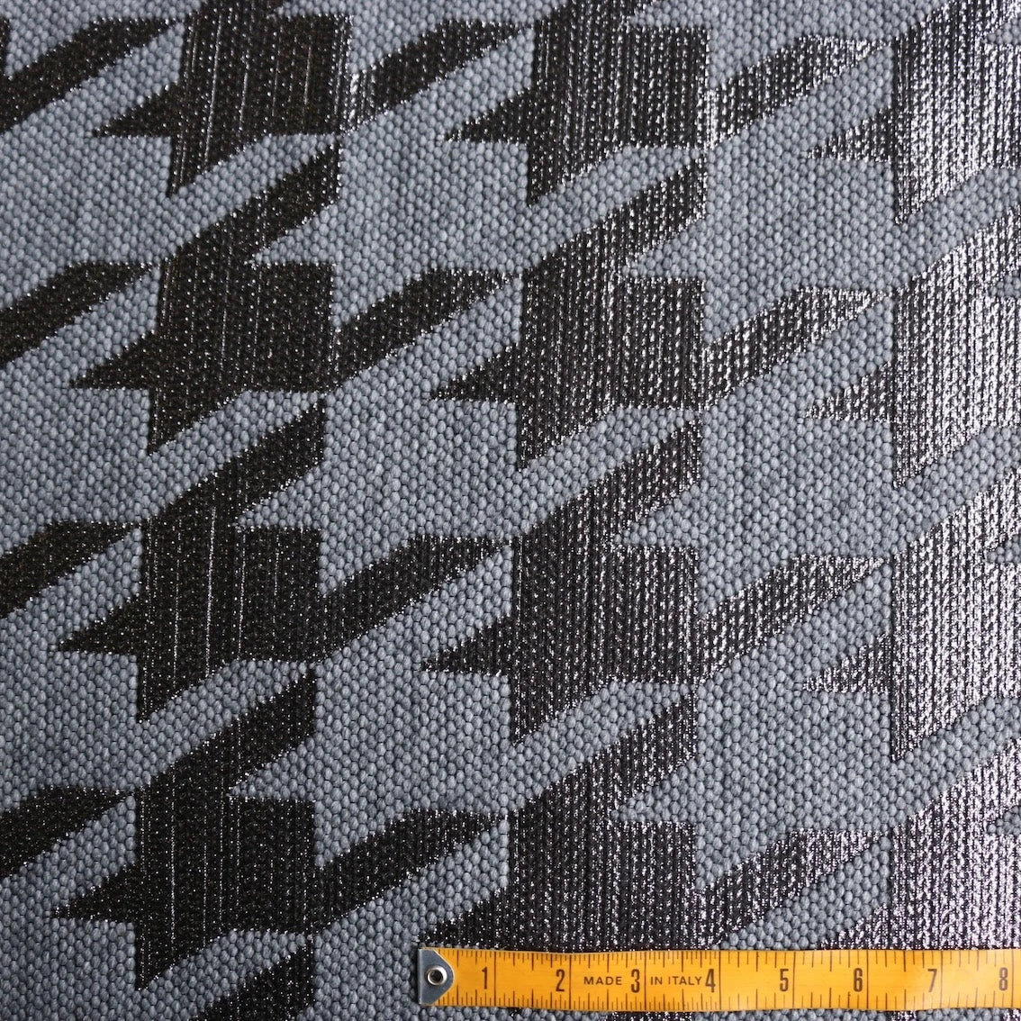 Italian grey/pewter metallic giant houndstooth 54% polyester 23% wool 17% polyamide 6% lurex