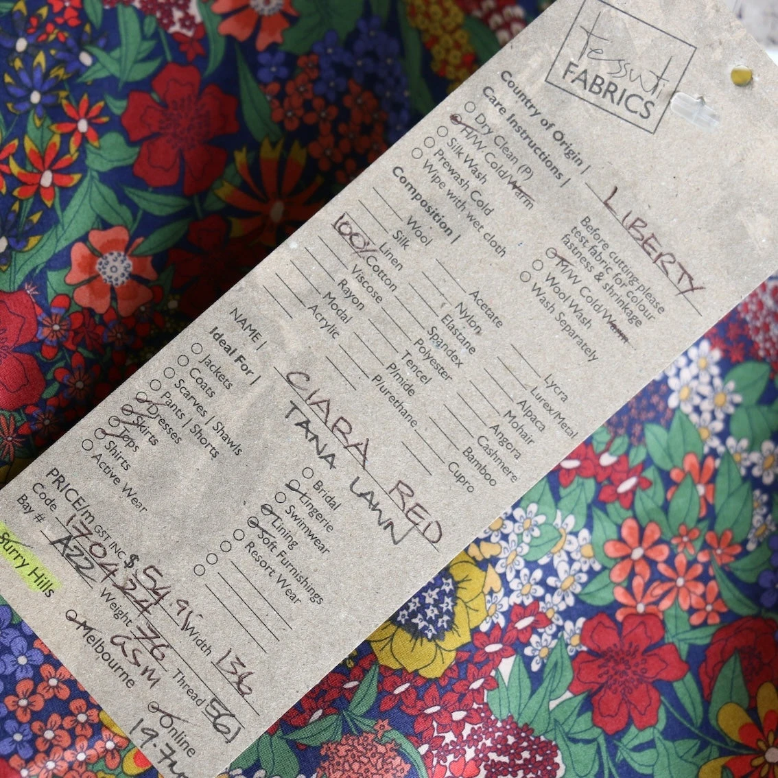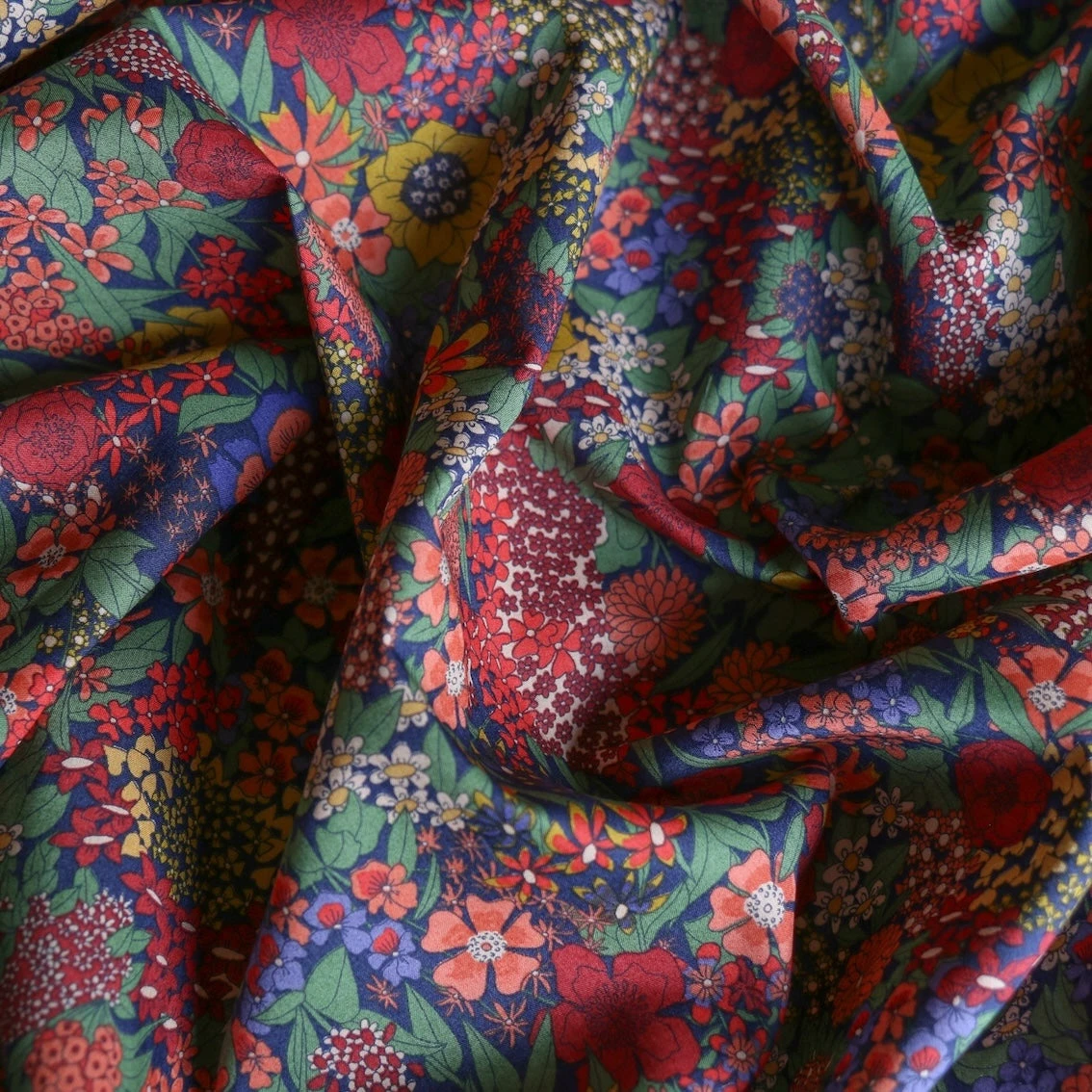 Liberty Fabrics Classic collection cherry red/green/mustard on navy printed 100% cotton Tana Lawn™