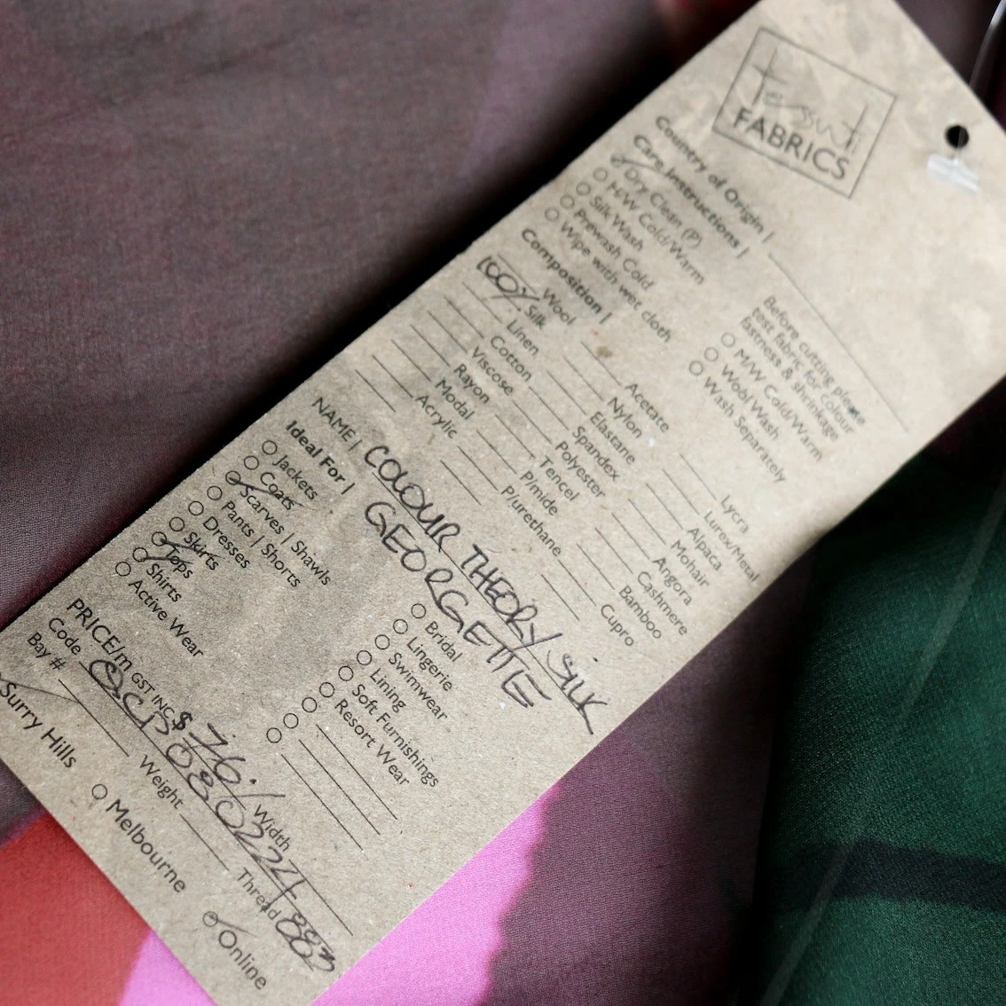 This stunning silk georgette ideal for flowy dresses, skirts, shirts, tops, tunic dresses, scarves, formalwear and racewear etc. Ideal for our Tosca Tunic or Athina Top patterns