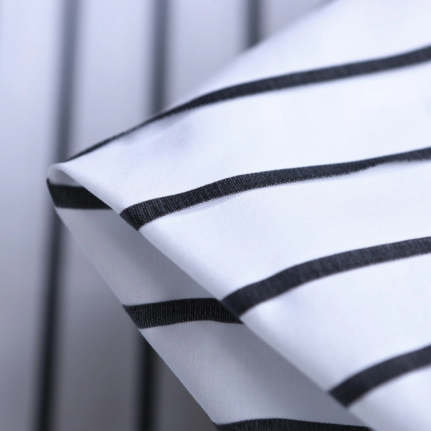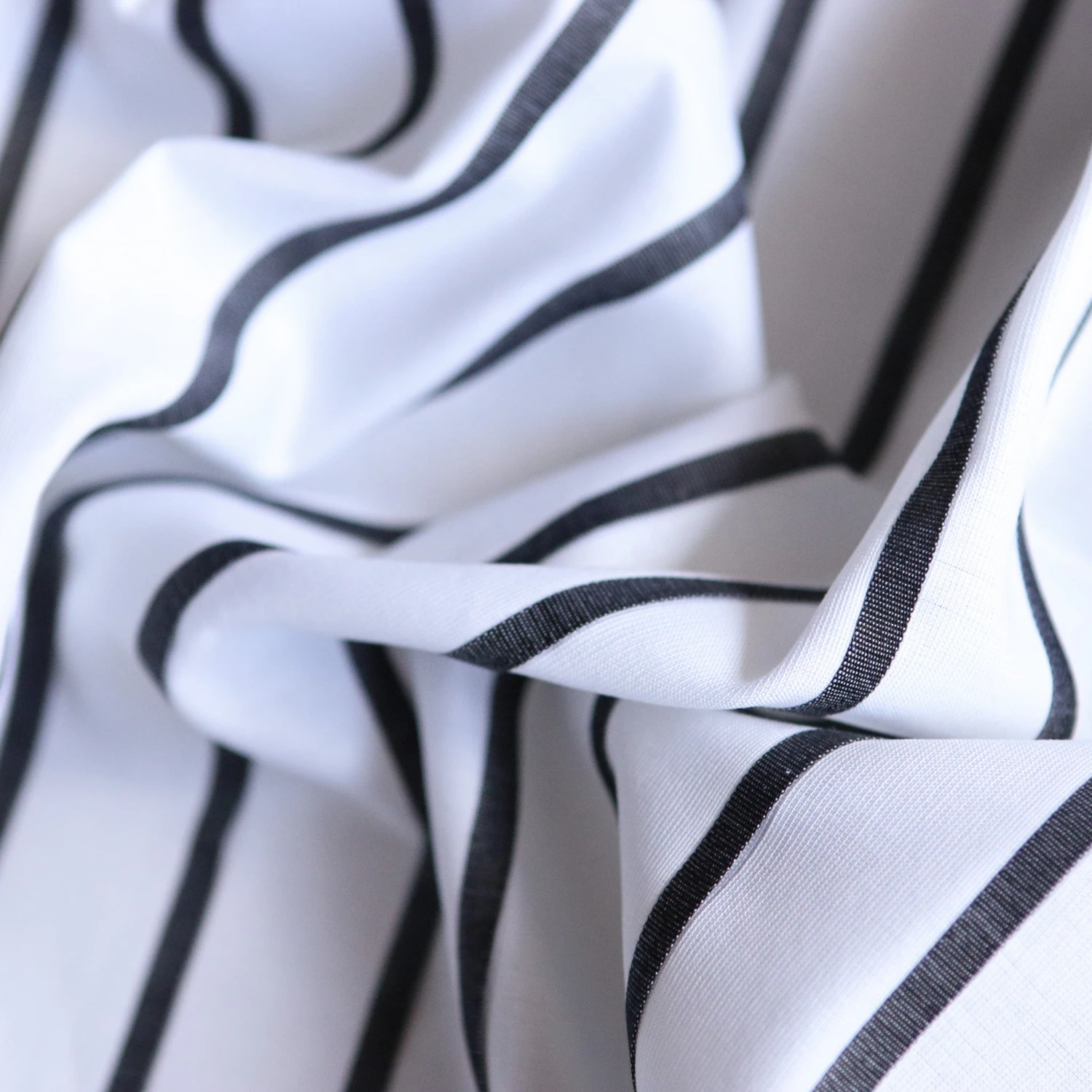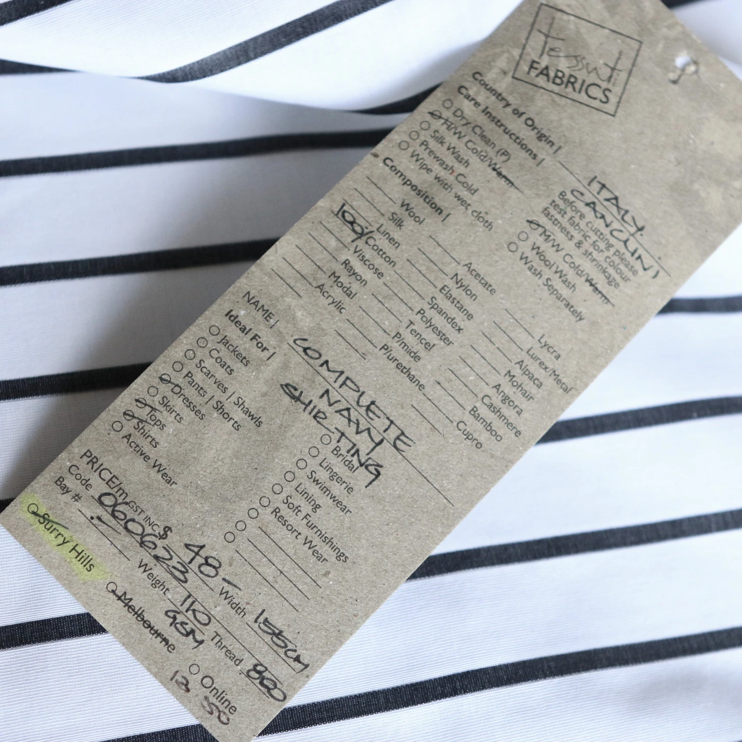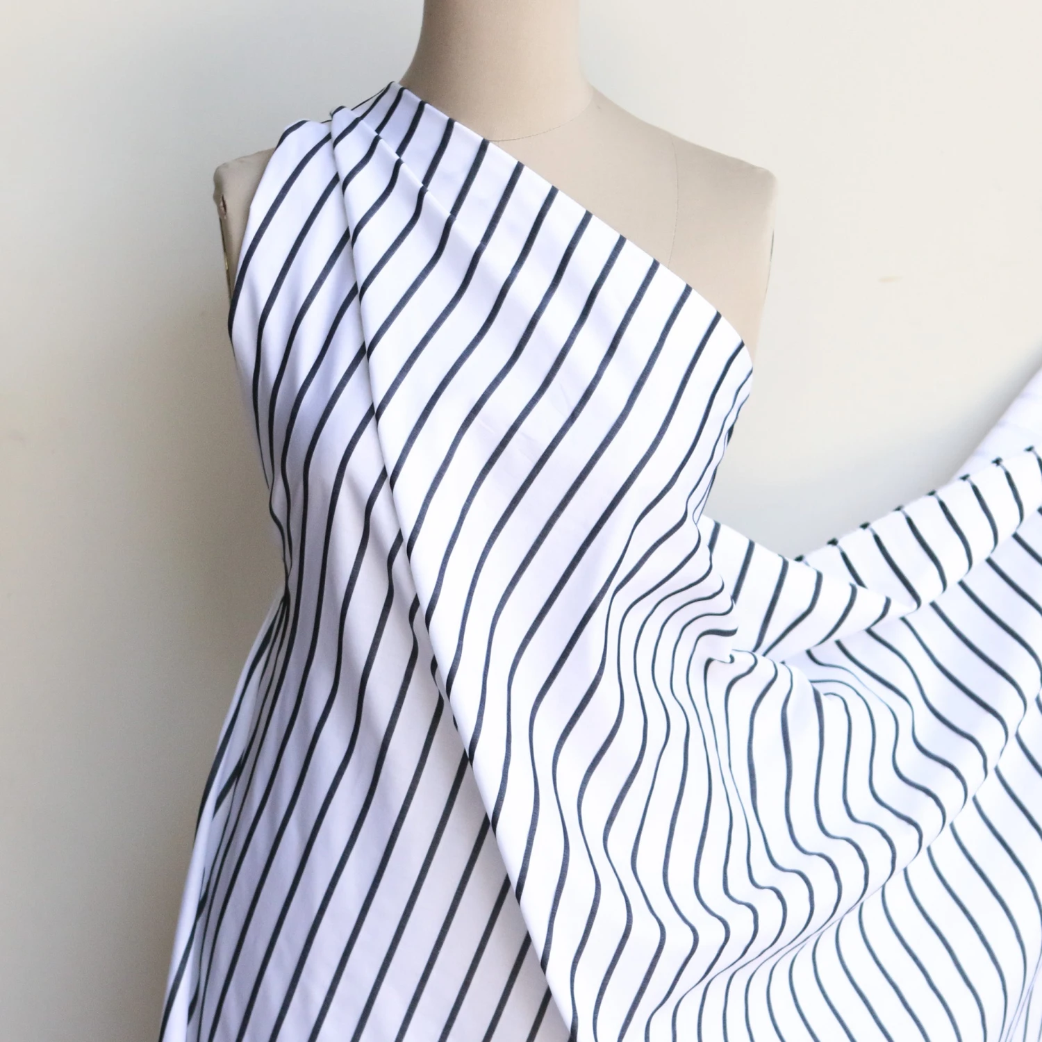 Quality Italian white/navy pleated stripe 100% cotton shirting