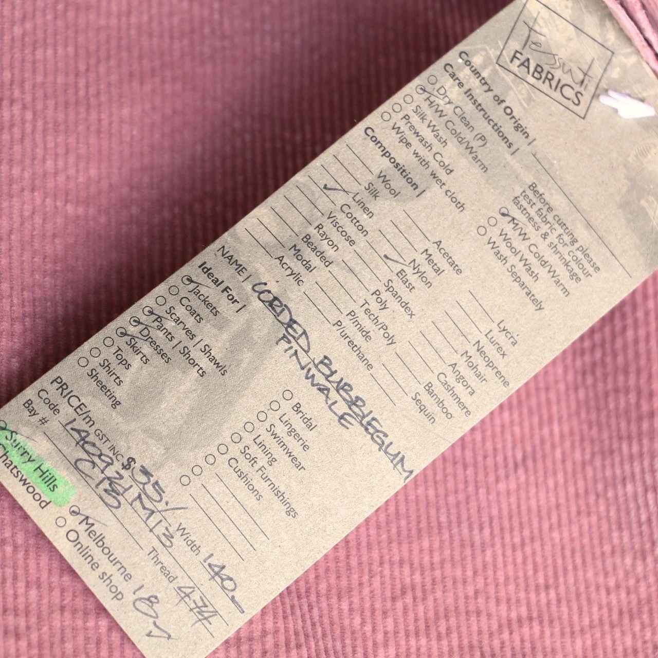 Due to their pile and sheen, corduroys can be difficult to photograph and represent with 100% colour accuracy. Please refer to the recommended thread for a good colour guide and if colour matching is required, we recommend purchasing a swatch before buying your fabric.