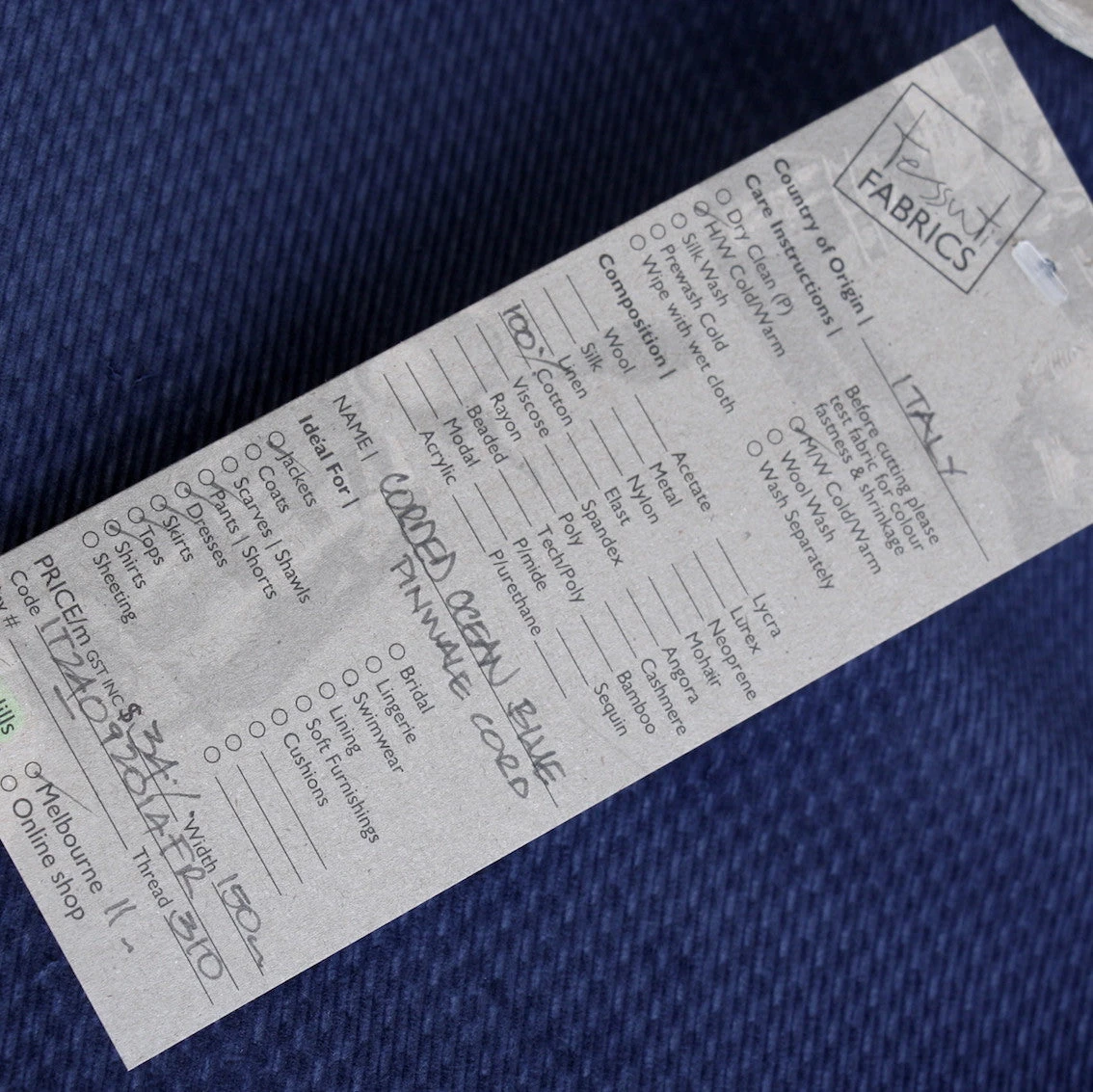 Due to their pile and sheen, corduroys can be difficult to photograph and represent with 100% colour accuracy. Please refer to the recommended thread for a good colour guide and if colour matching is required, we recommend purchasing a swatch before buying your fabric.