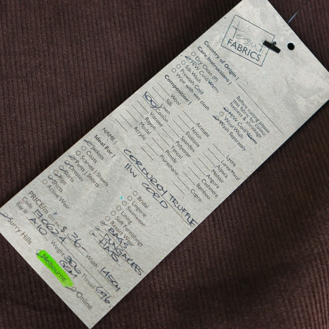 Chocolate brown 11 wale 100% cotton corduroyÂ