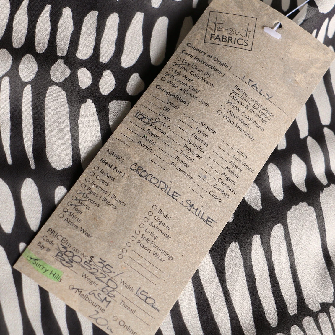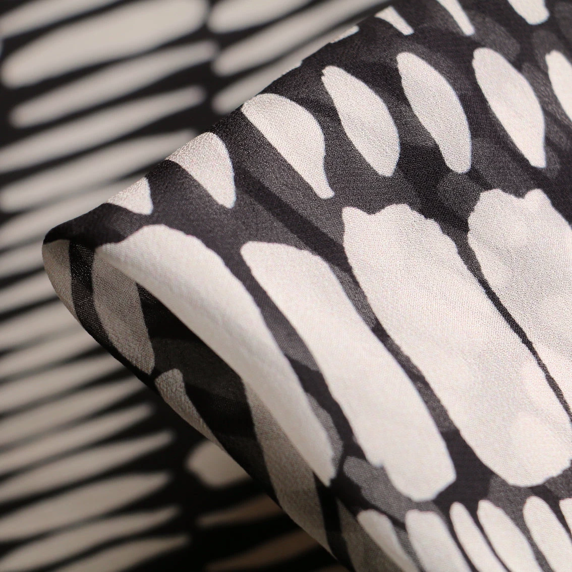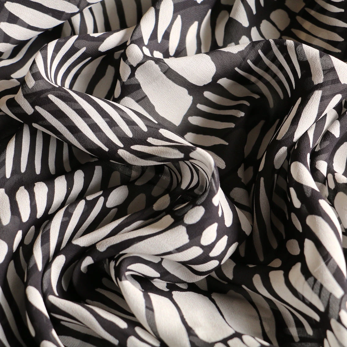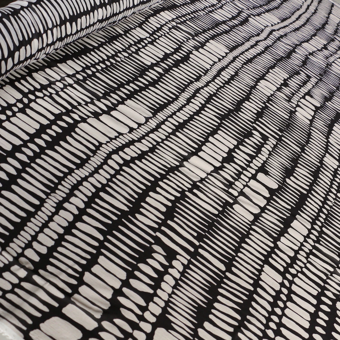 Italian designer cream/black printed 100% viscose georgette