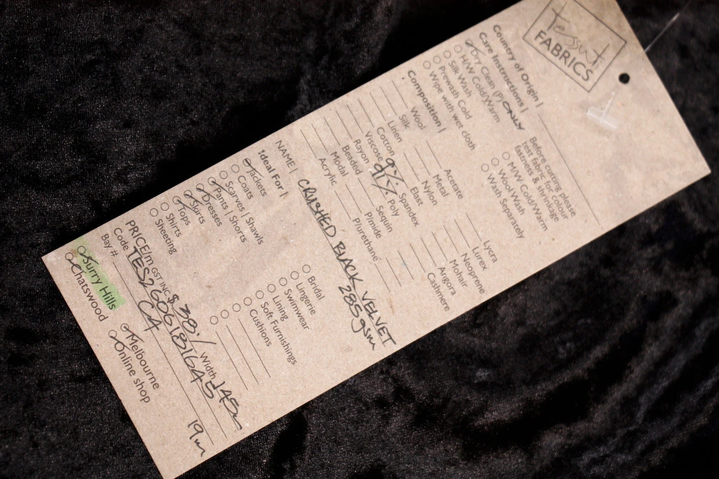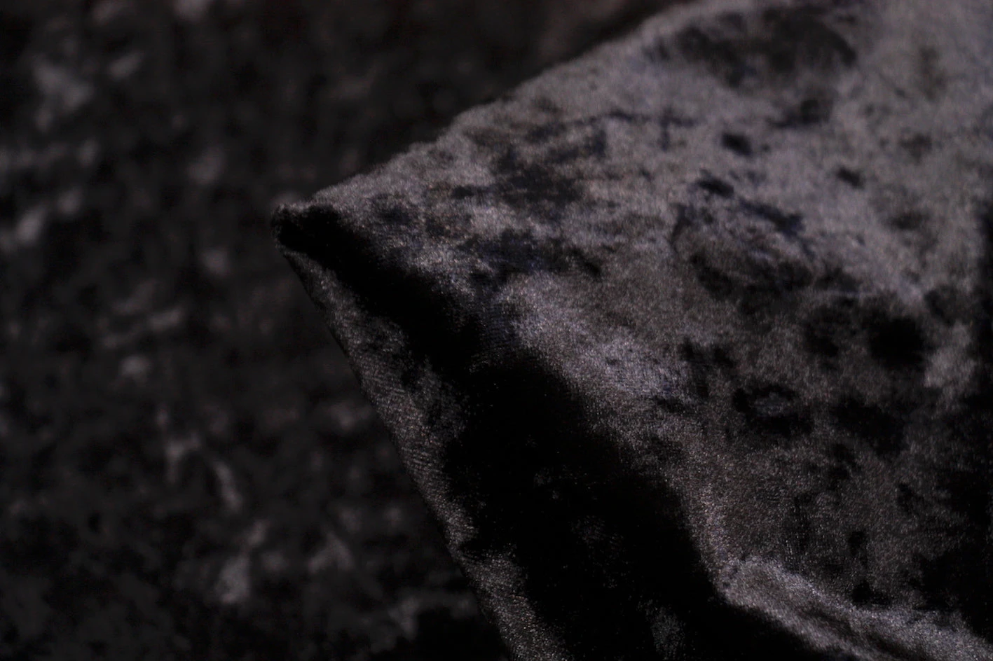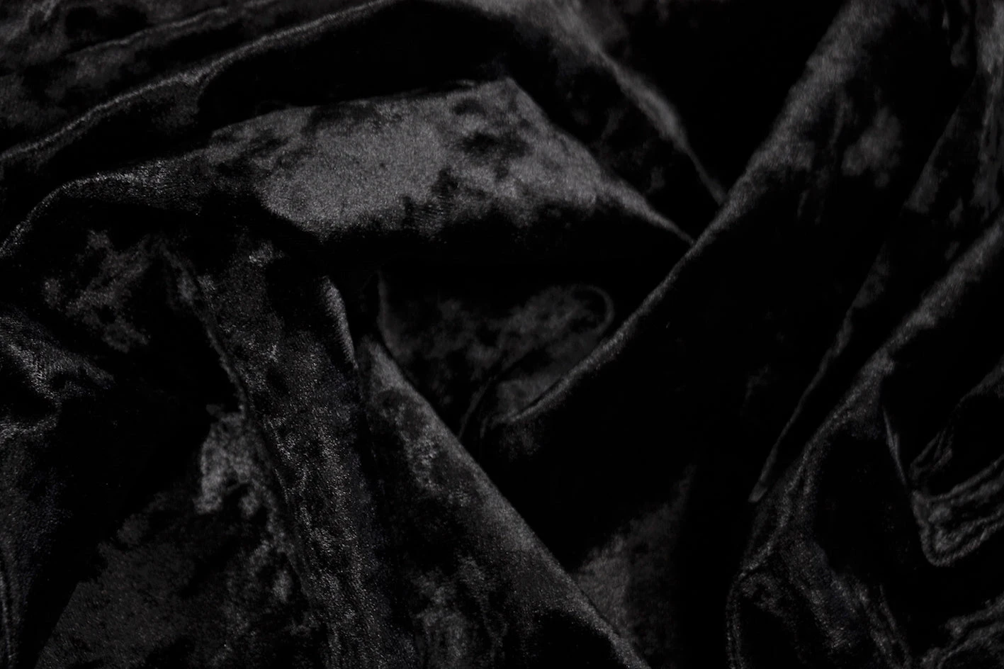 Quality black 91% polyester 10%Â spandex stretch crushed velvet. Width:150cm. Weight:285gsm
