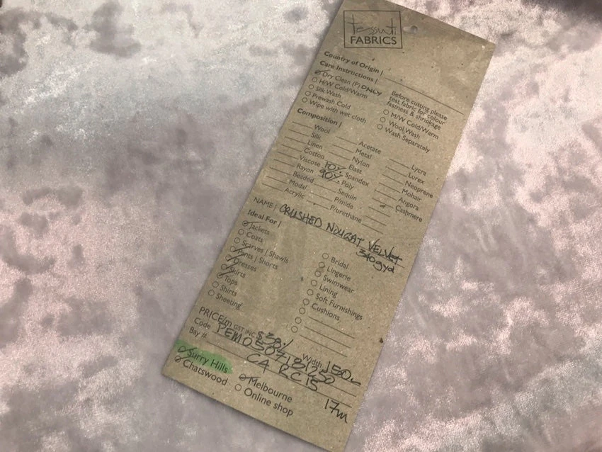 Quality nougat coloured 90% polyester 10%Â spandex stretch crushed velvet.