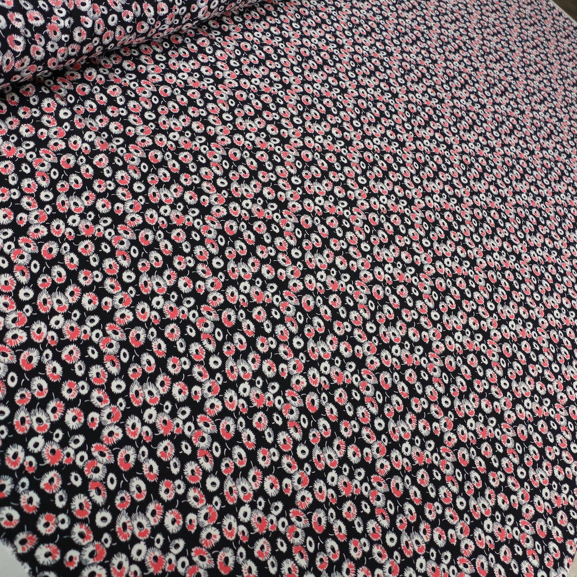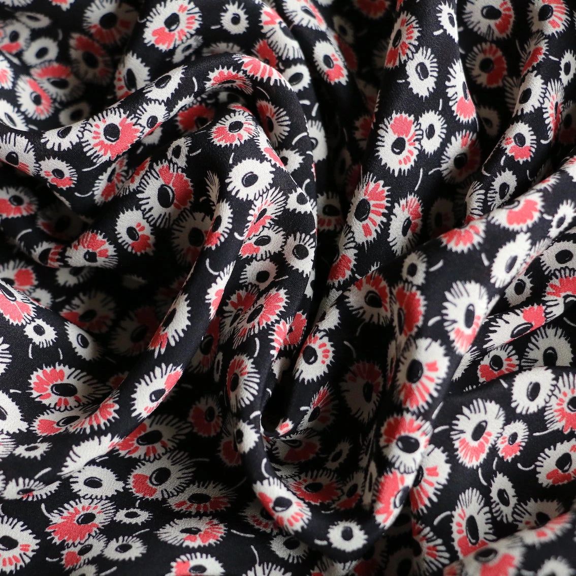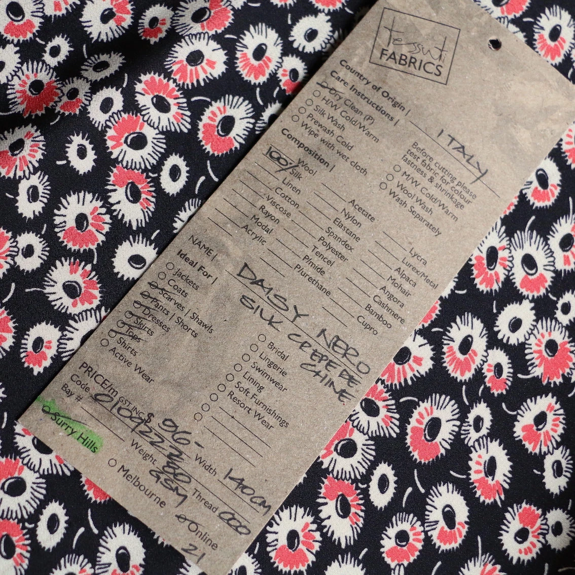 Italian designer black/ivory/rose pink daisy floral printed 100% silk crepe de chine