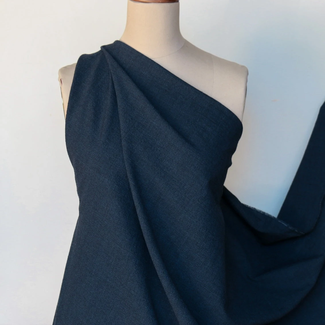 Italian slate navy yarn dyed textured seersucker 100% wool with mechanical stretch
