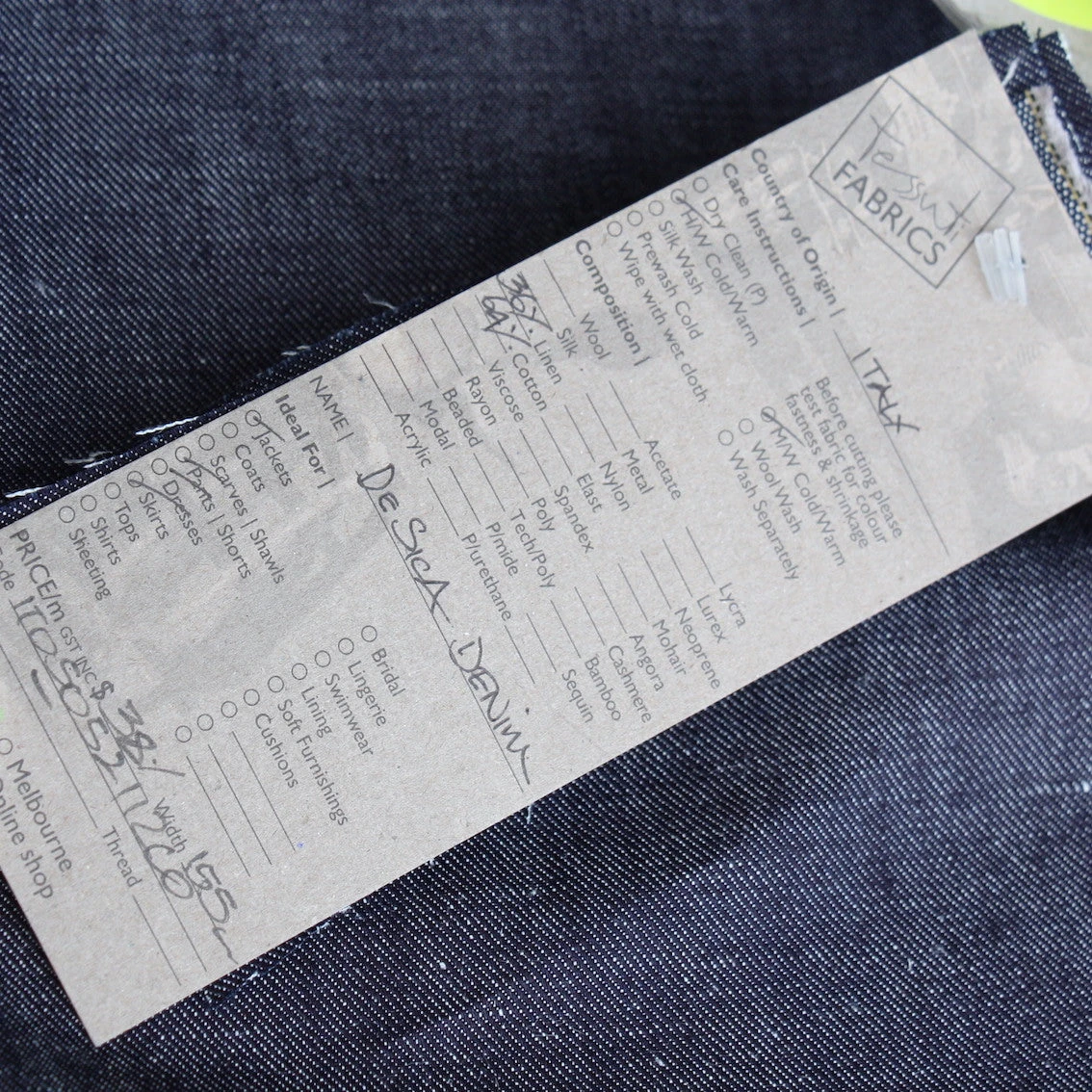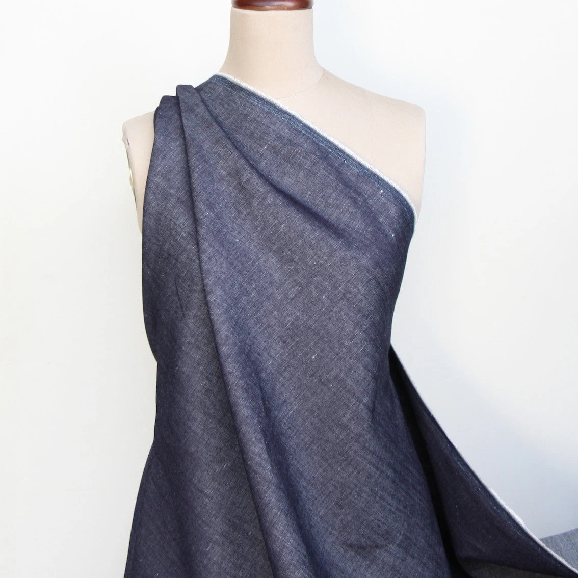 Designer Italian medium weight, dark navy 64%Â cotton 36% linen denim.