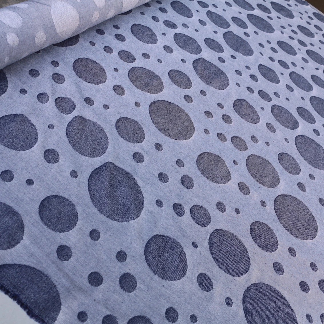Italian navy yarn dyed spot jacquard 100% linenÂ