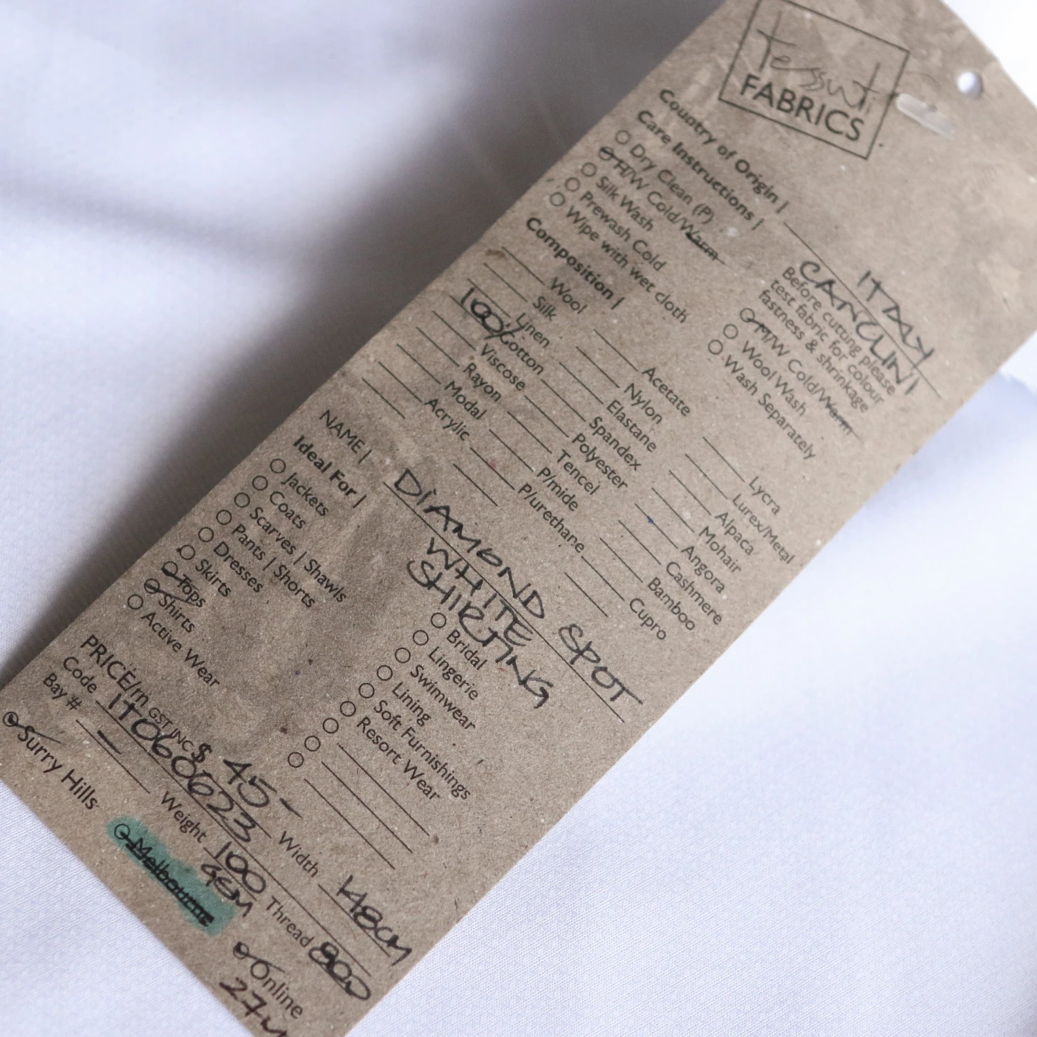 Quality Italian optical white with diamond spot jacquard 100% cotton shirting