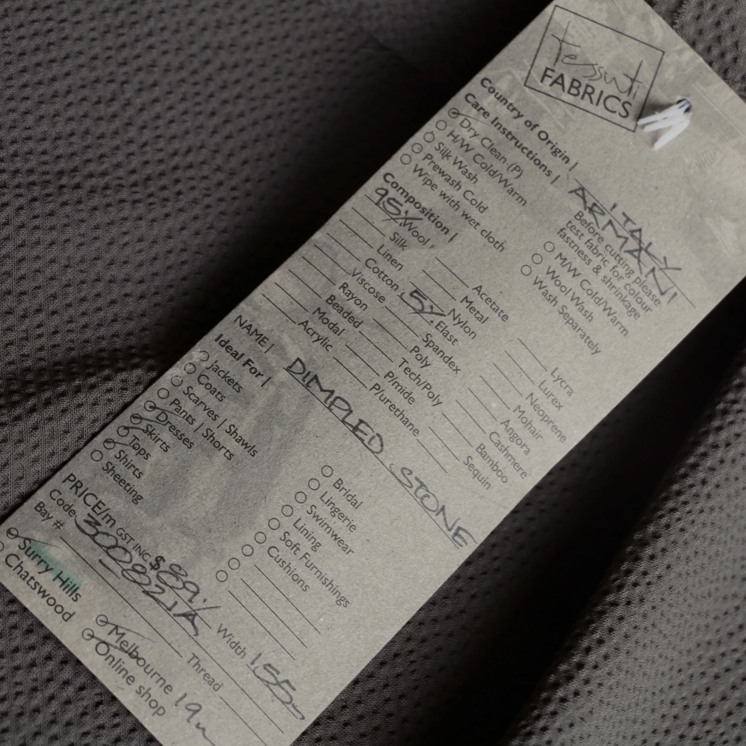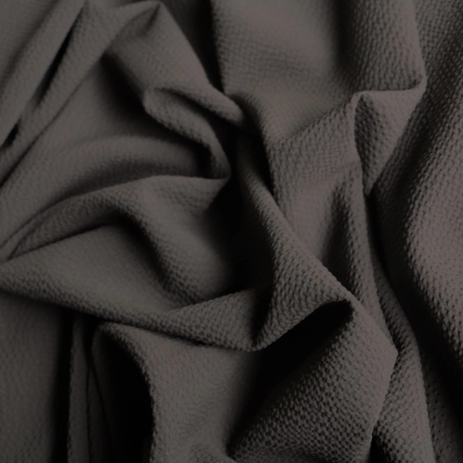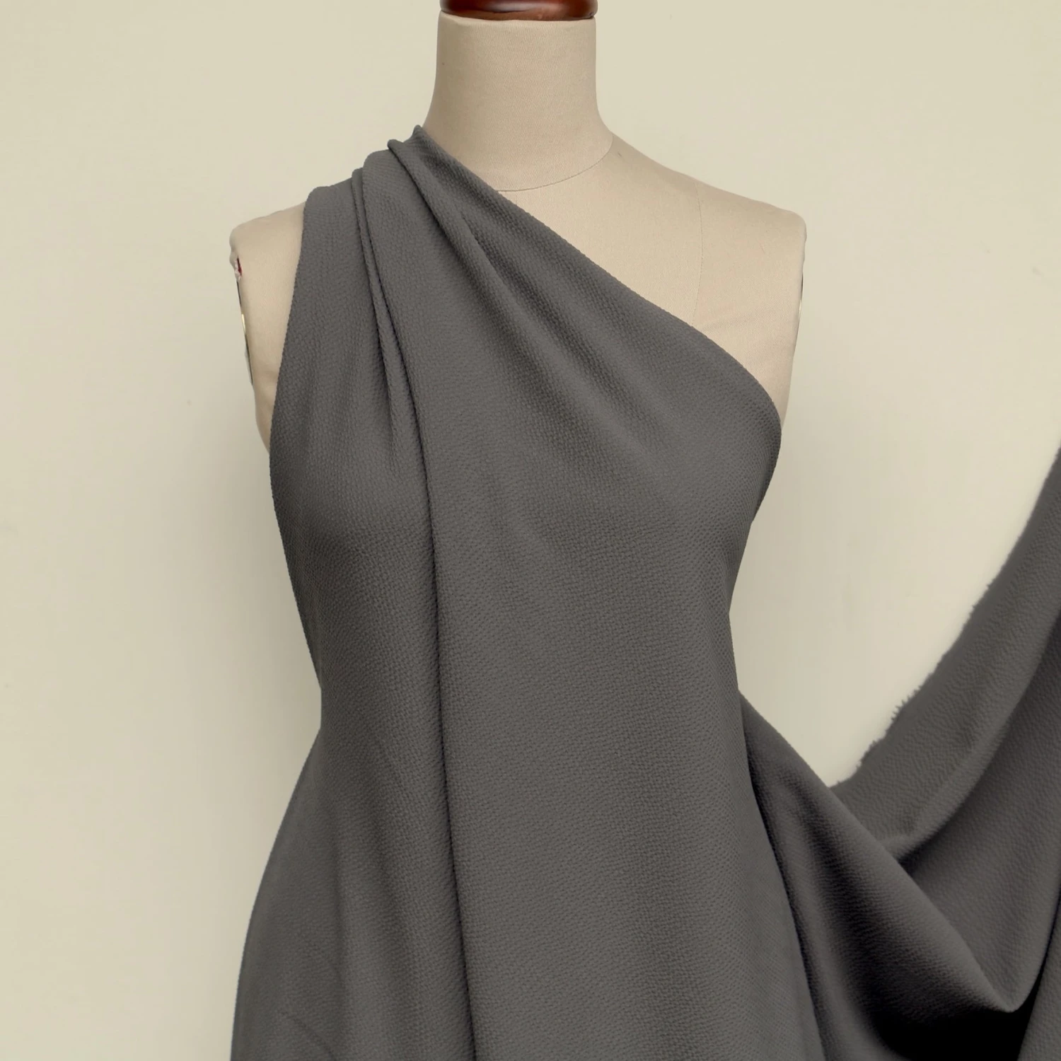 Italian designer stone grey 95% wool 5% elastane seersucker stretch woven