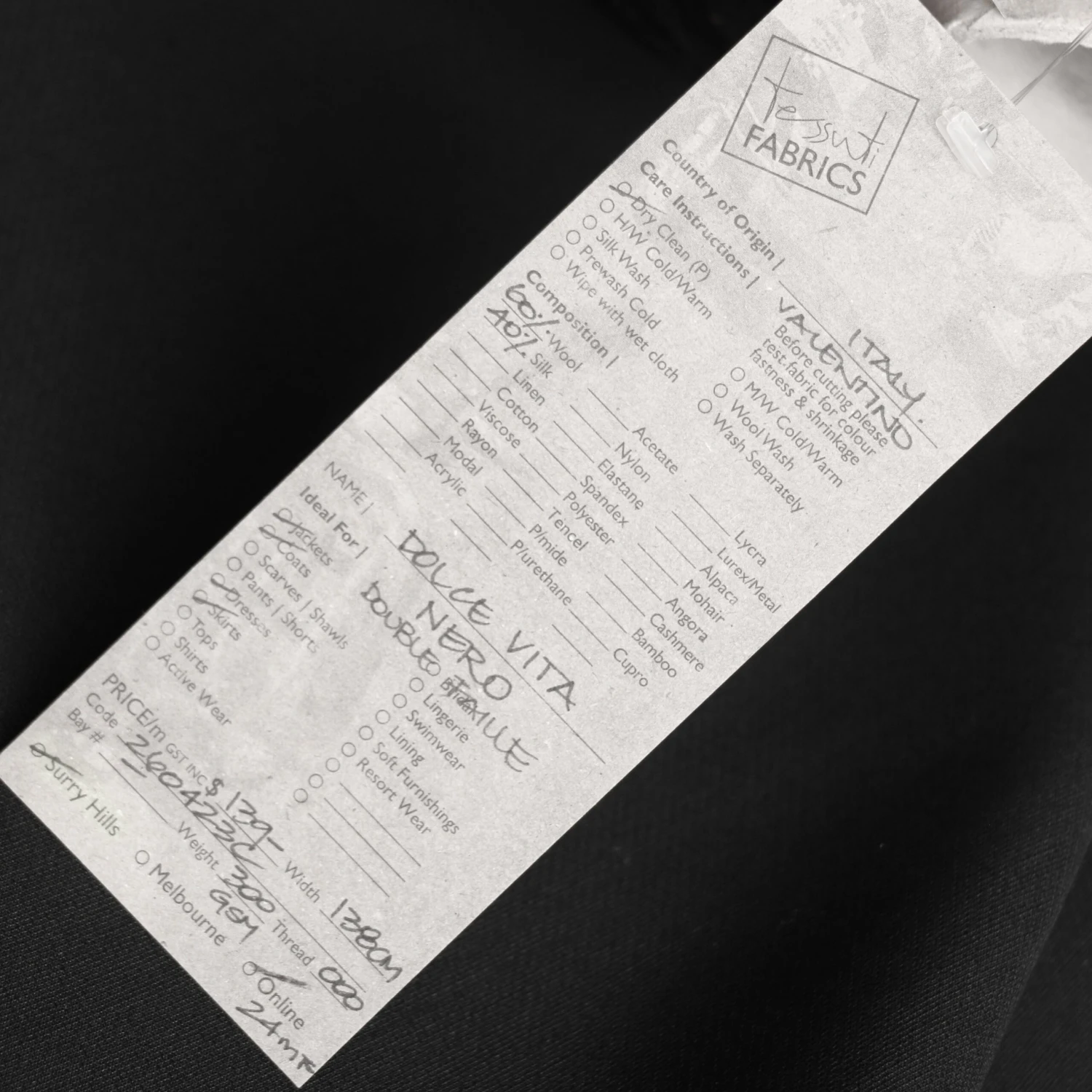 Italian black 60% wool 40% silk double faille