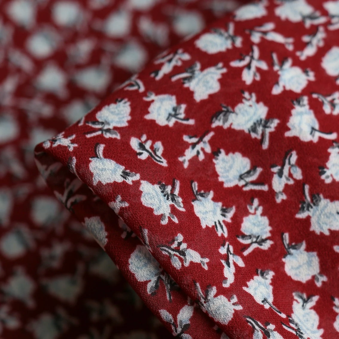 Italian designer cherry red/rose floral all printed 100% viscose georgette