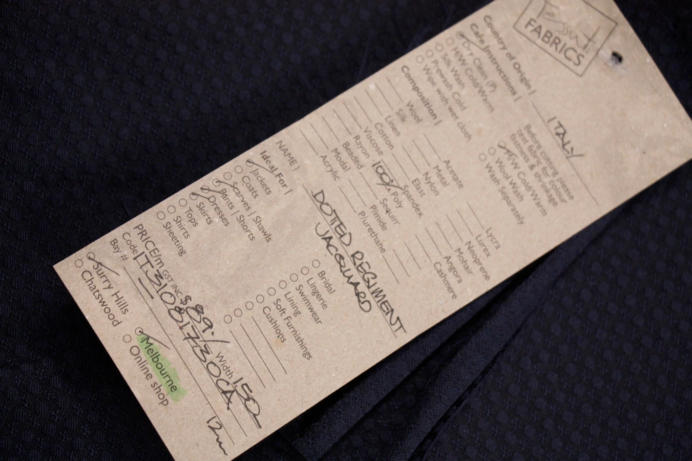 Italian designer navy 100% polyester jacquard. Width: 150cmÂ