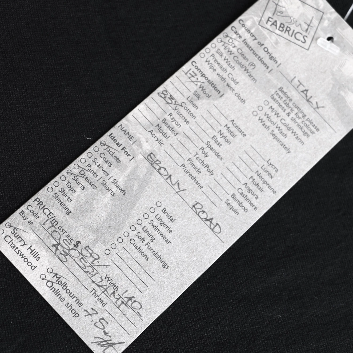 Italian designer black 83% viscose 17% wool knit jersey