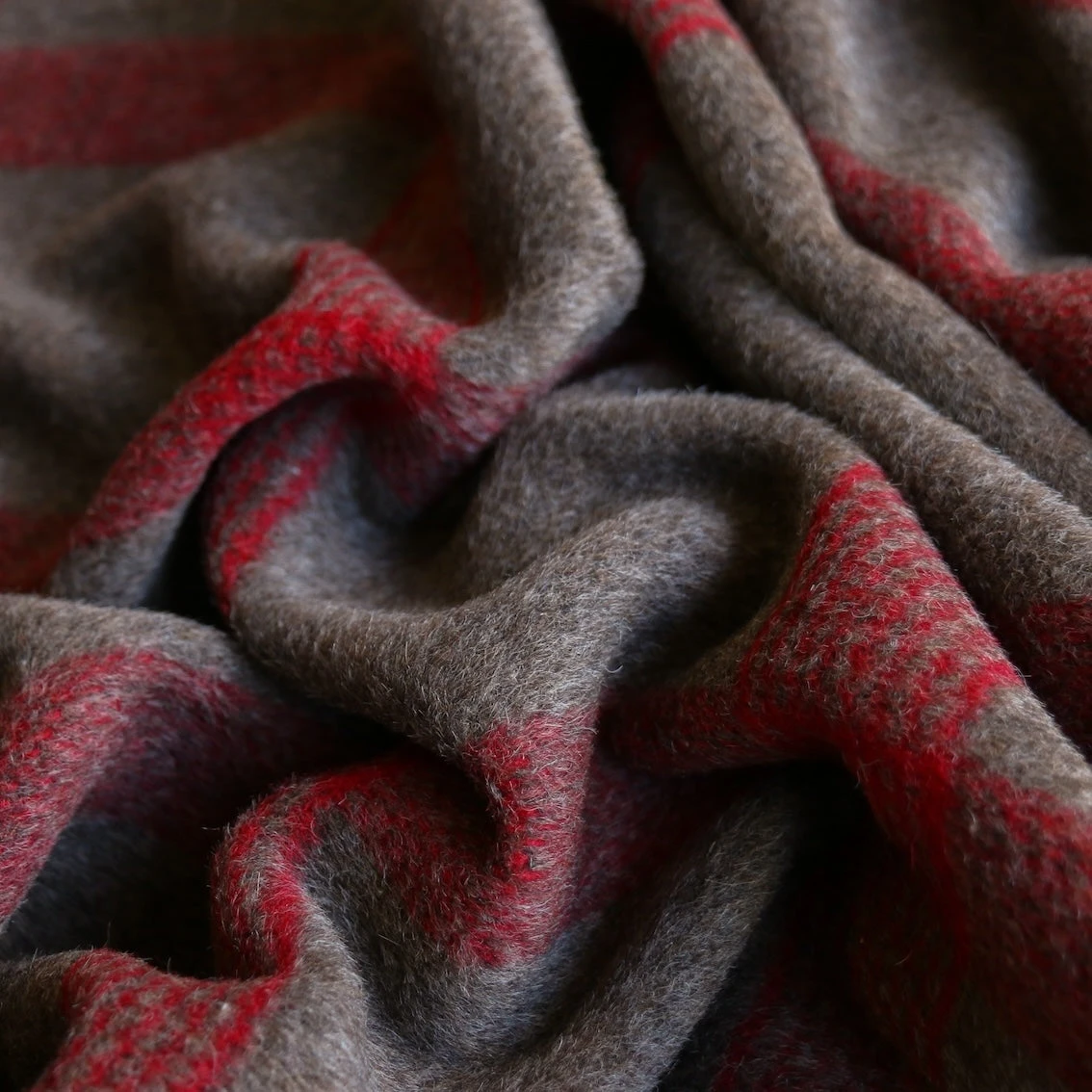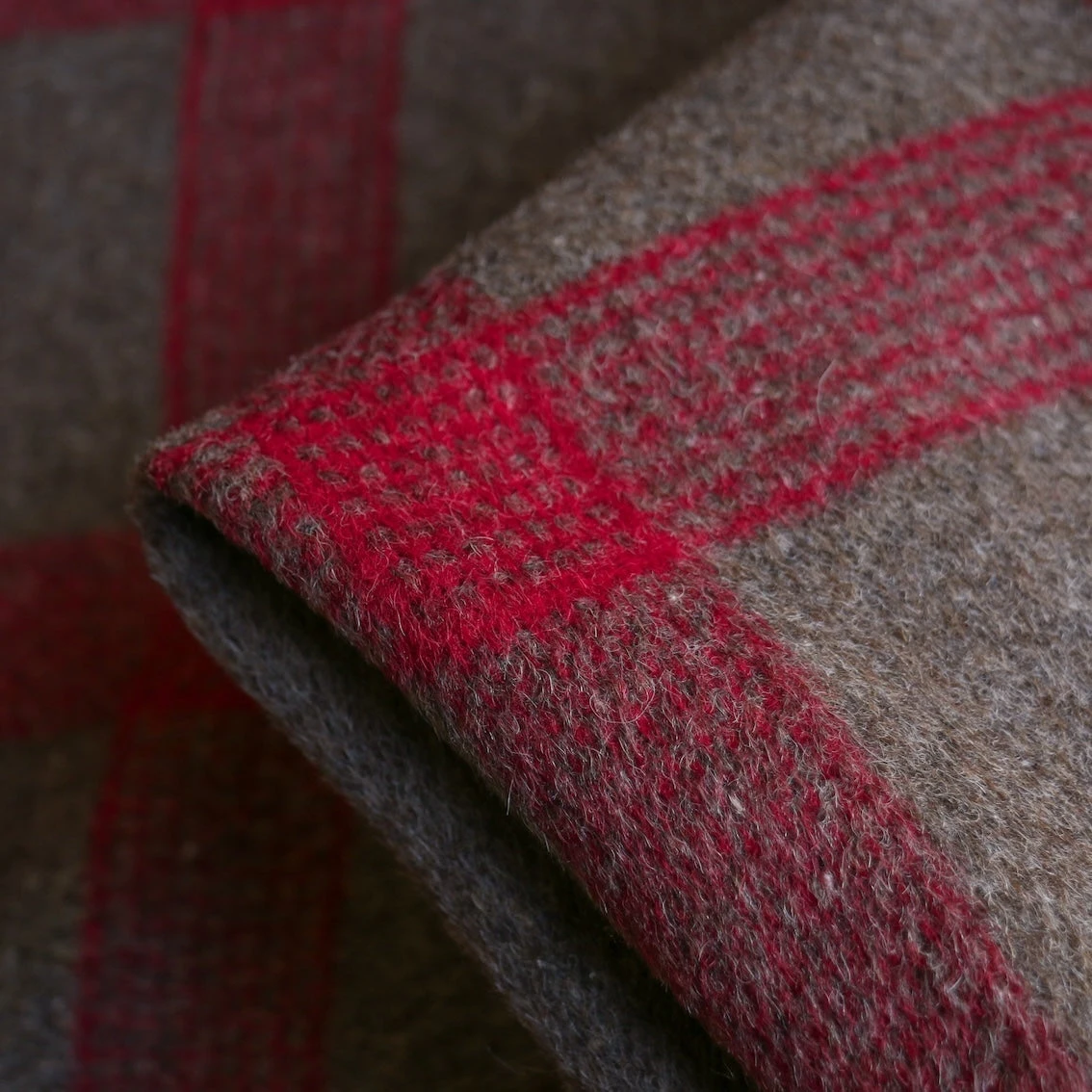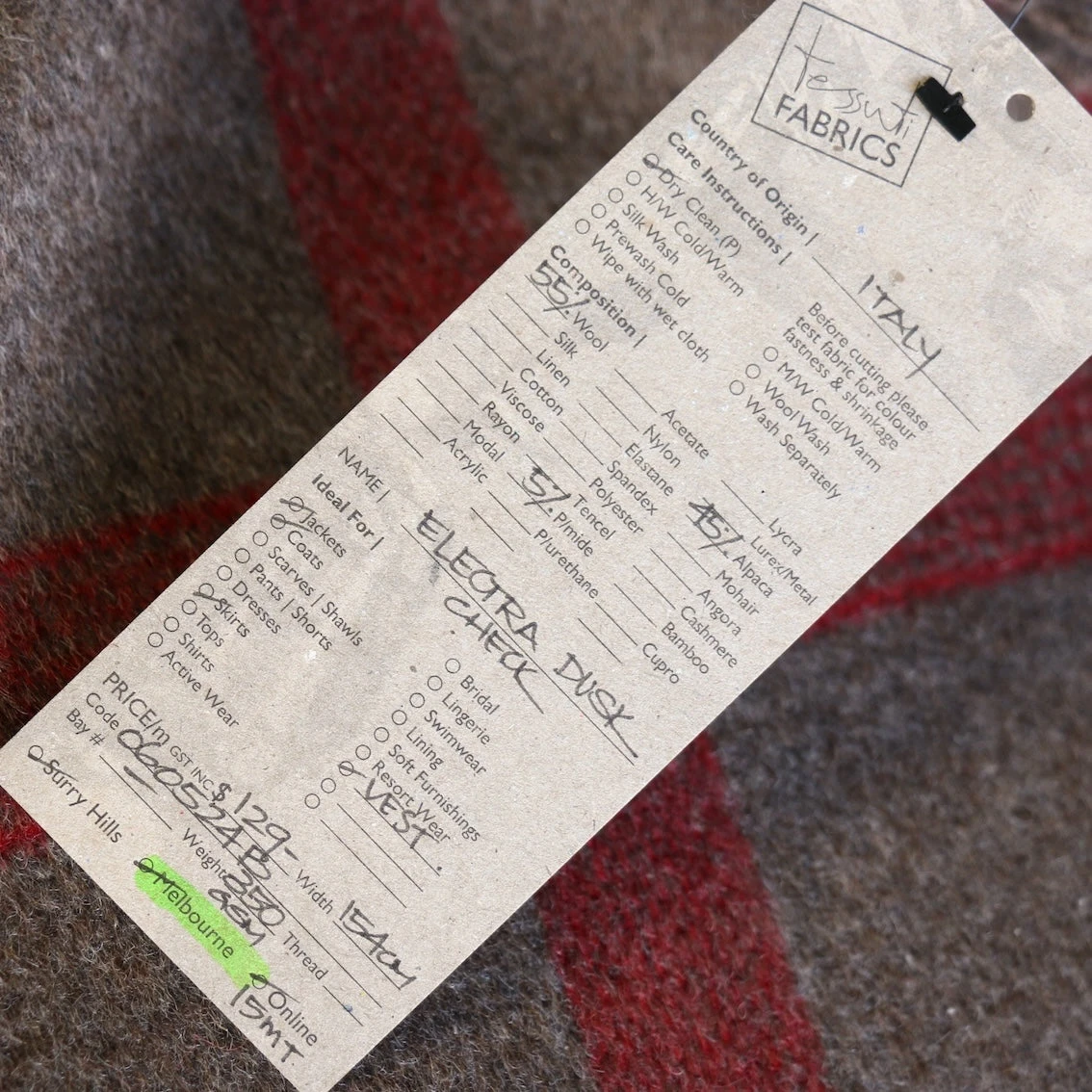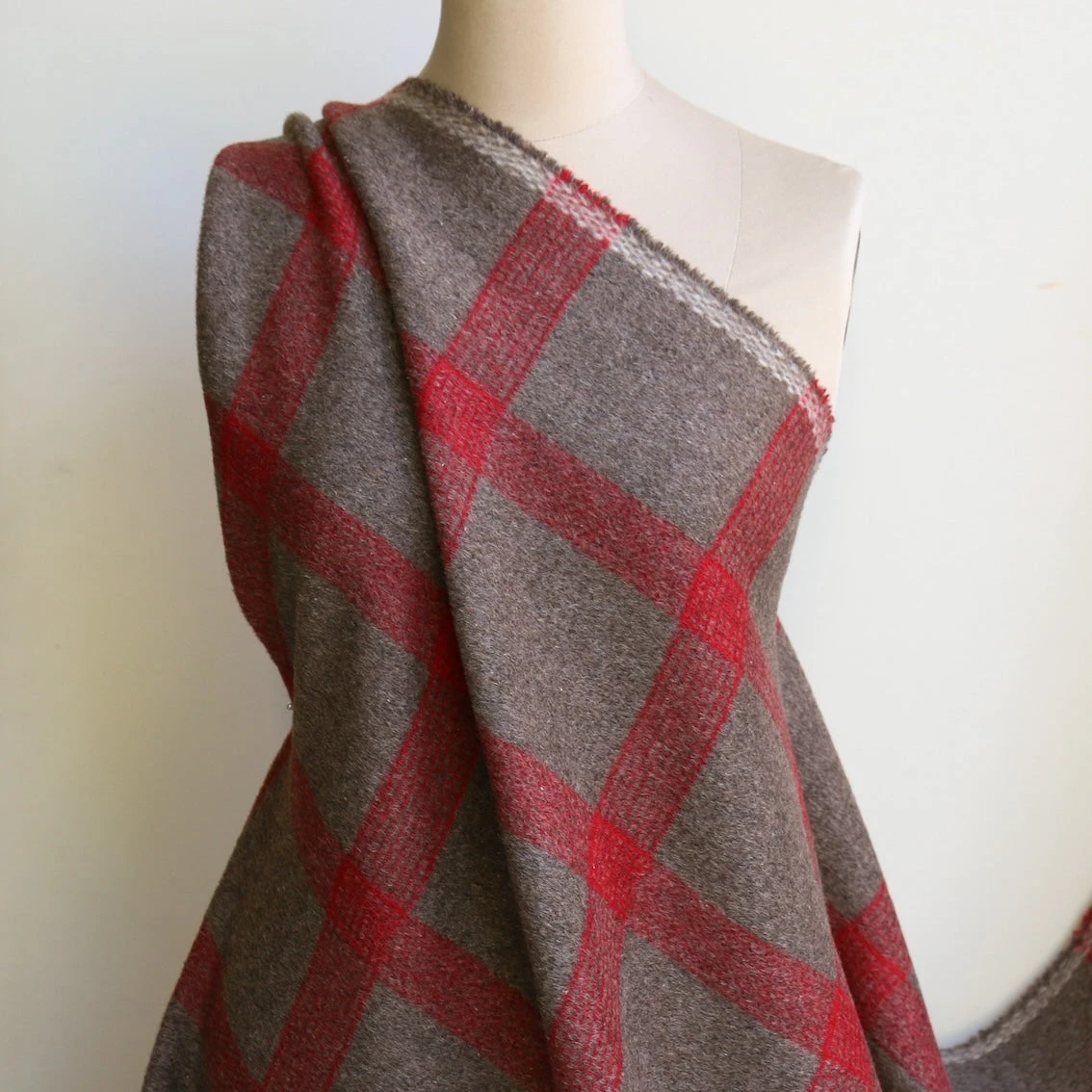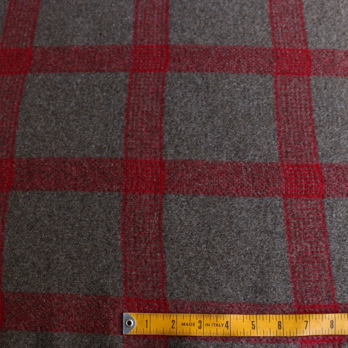 Italian taupe/red check 55% wool 45% alpaca 5% polyamide coating