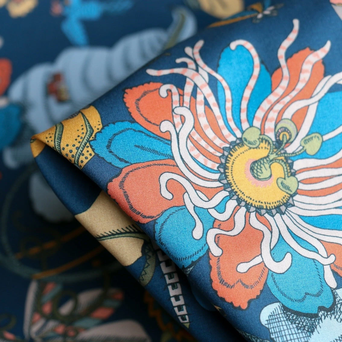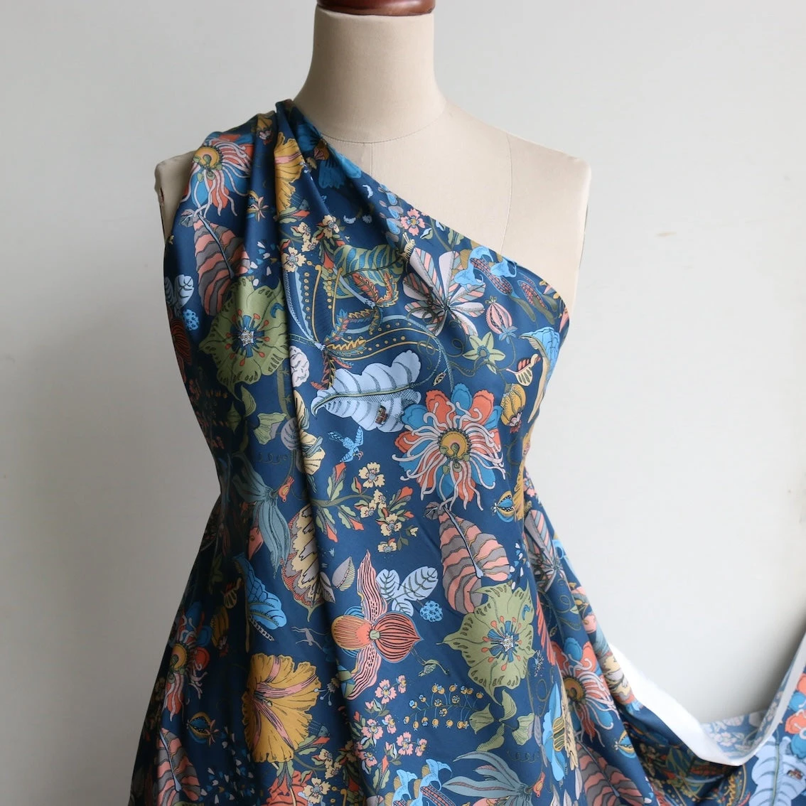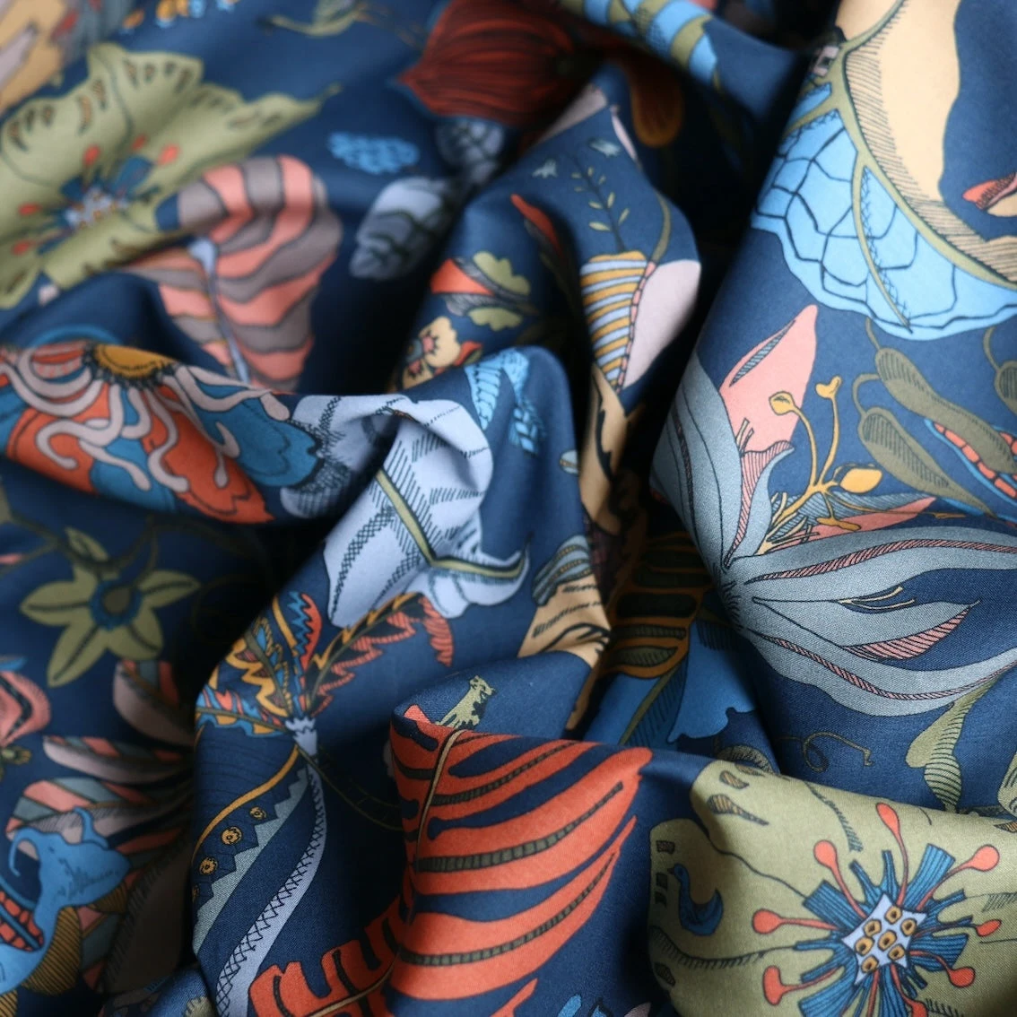Liberty Fabrics Classic collection blue/mustard/olive/brick orange fantasy land printed 100% cotton Tana Lawn™