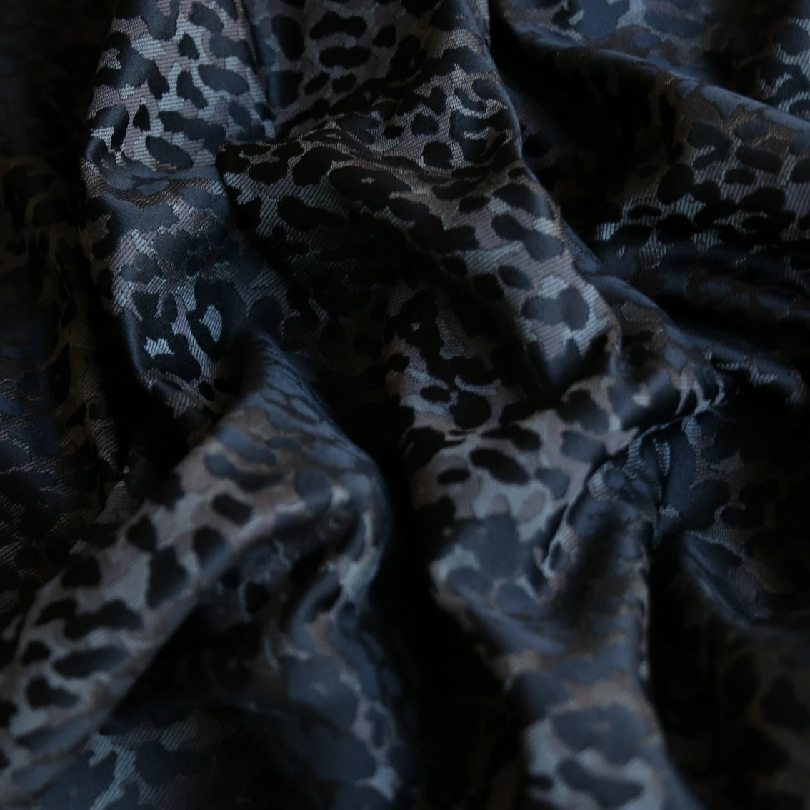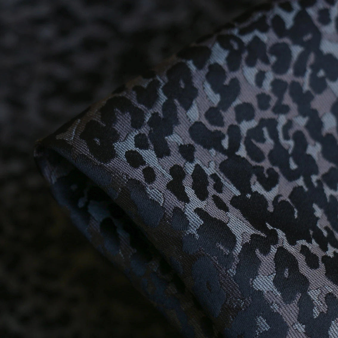 Italian charcoal/black leopard spot 100% polyester textured jacquardÂ