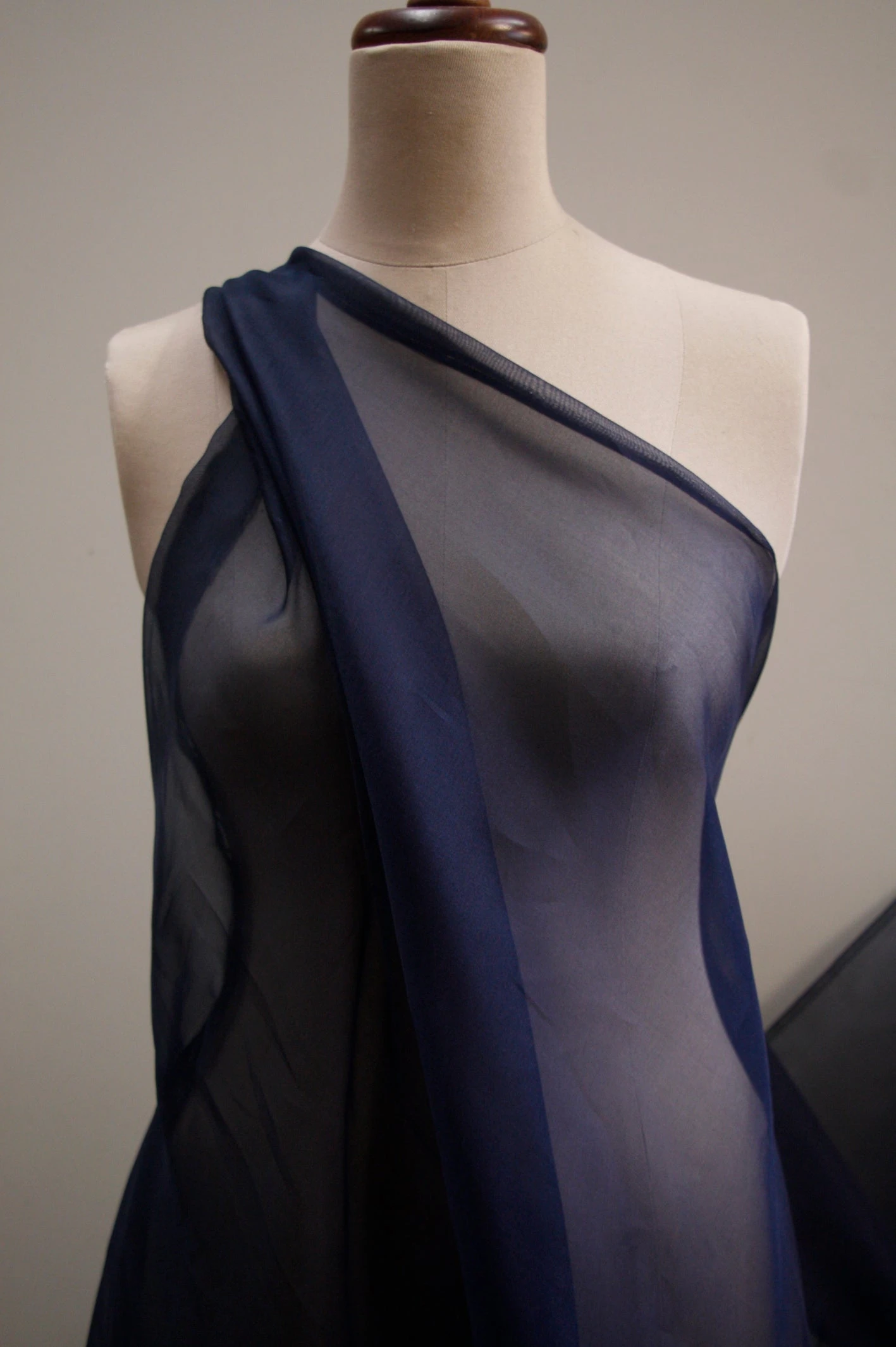 French navy 100% silk organza. Width:137cm Weight:6mm