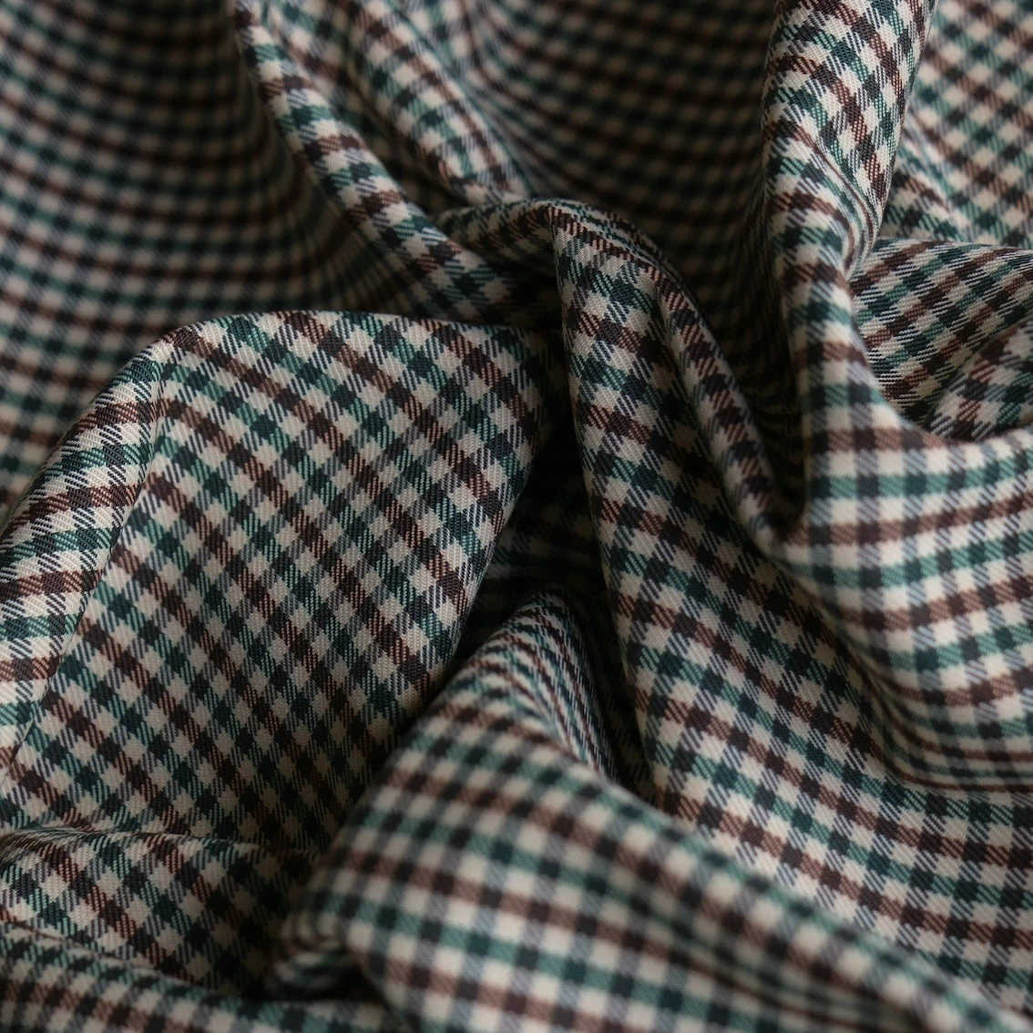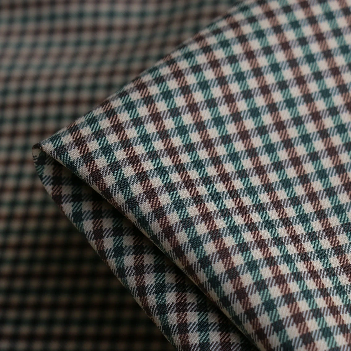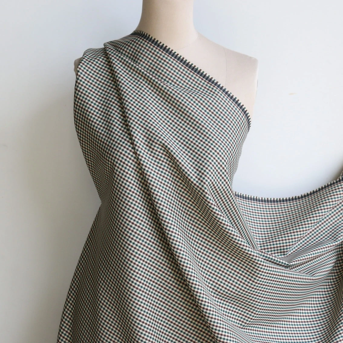 Italian green/brown checked 44% polyamide 30% polyester 25% wool 1% elastane with water resistant (not waterproof) finish