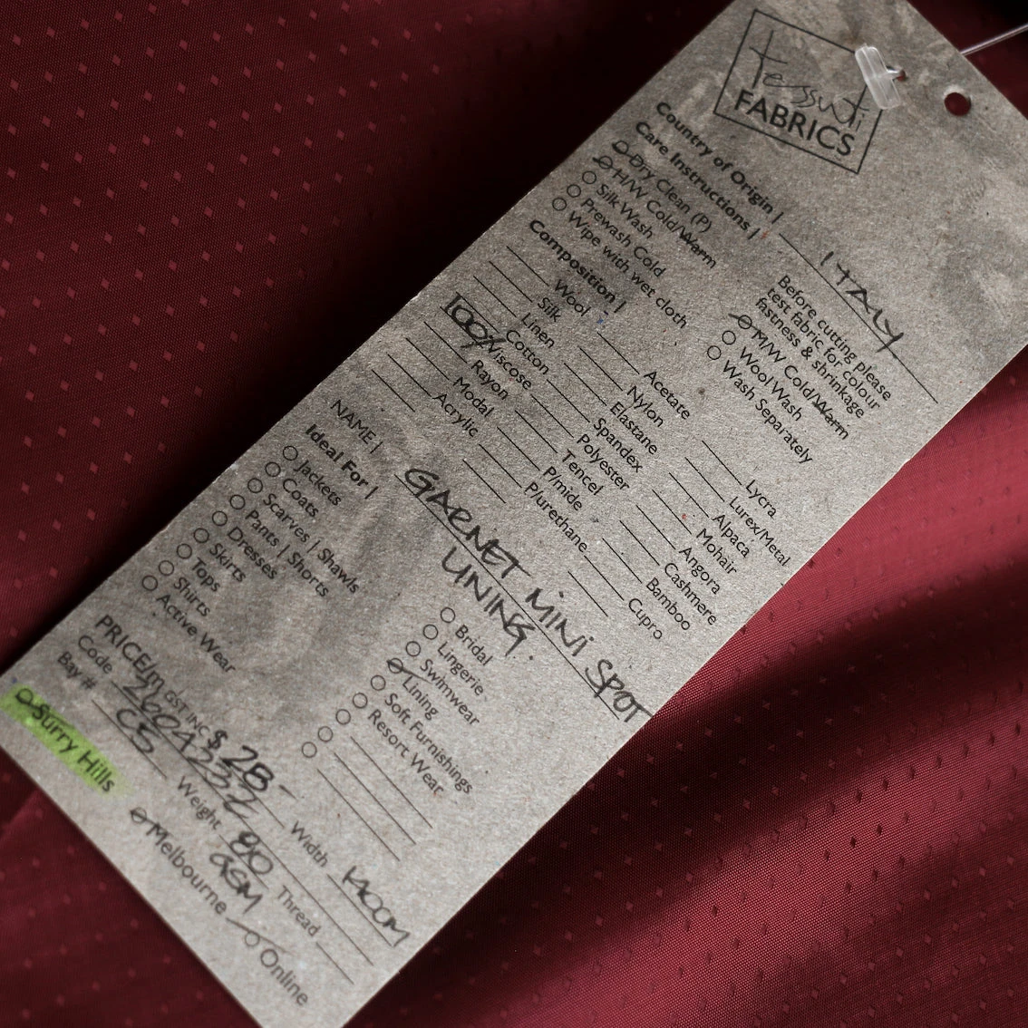 Italian garnet mini spot jacquard 100% viscose fancy lining