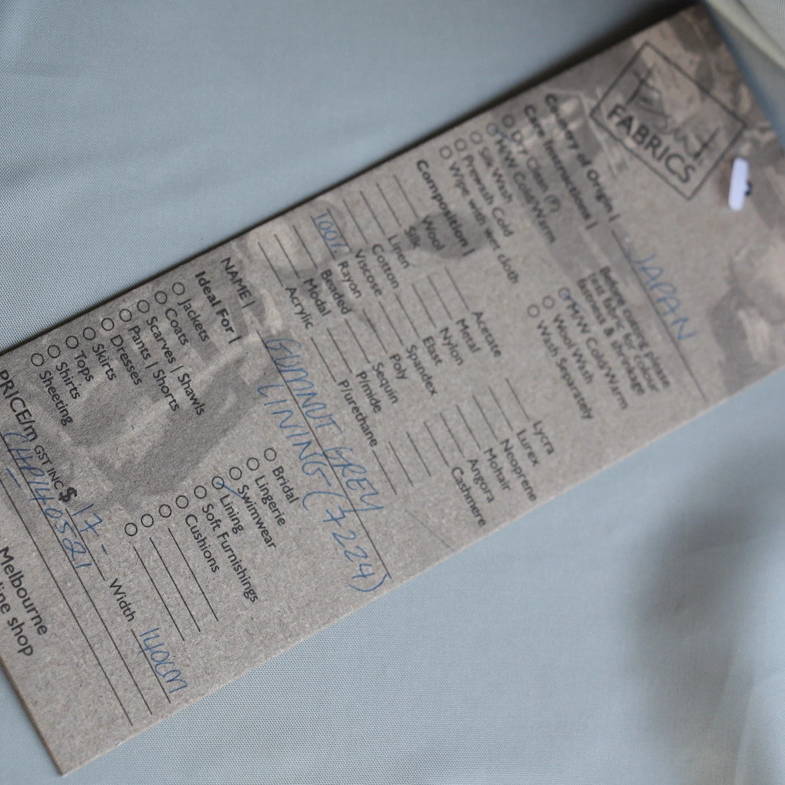 Pale grey 100% Japanese Bemberg rayon lining.