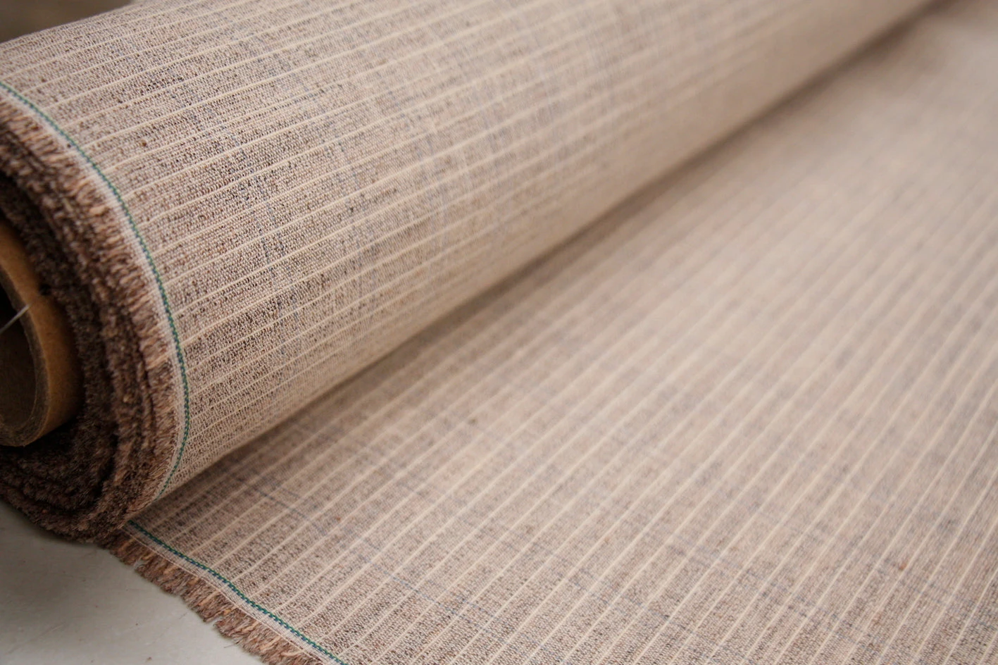 This woven canvas material includes horse tail insertions in the weft direction. These materials are found in the highest quality canvas materials. The resilience of horse tail reinforcement is unsurpassed and cannot be replicated by synthetic yarns. Horsehair canvas is applied as shoulder and body reinforcement in classic menswear tailoring.