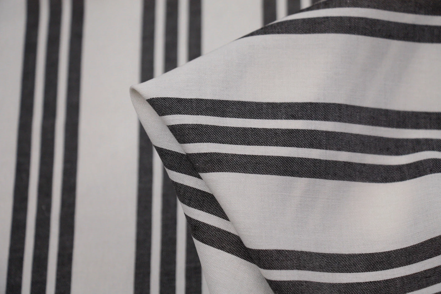 Designer ivory/dark grey striped cotton/rayon