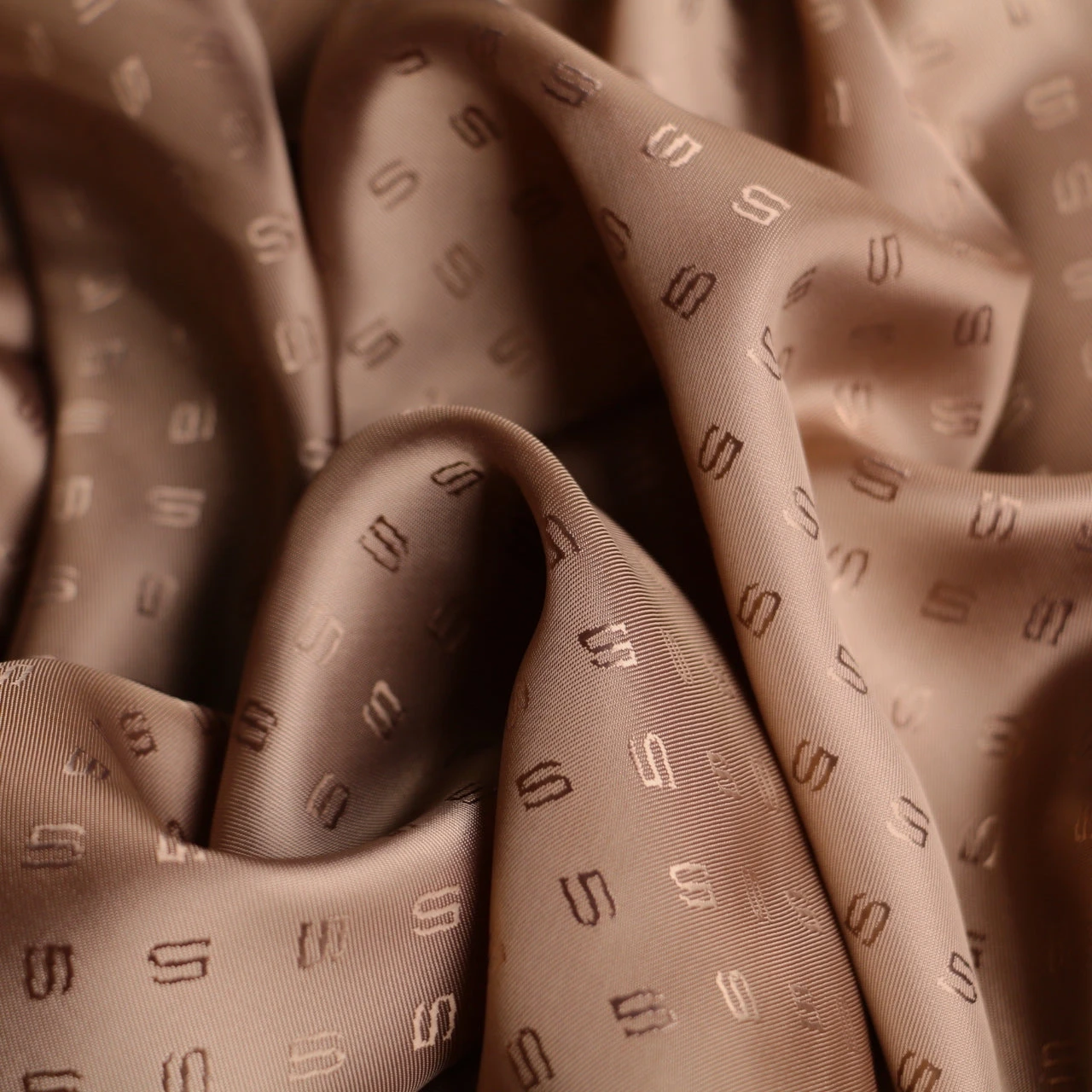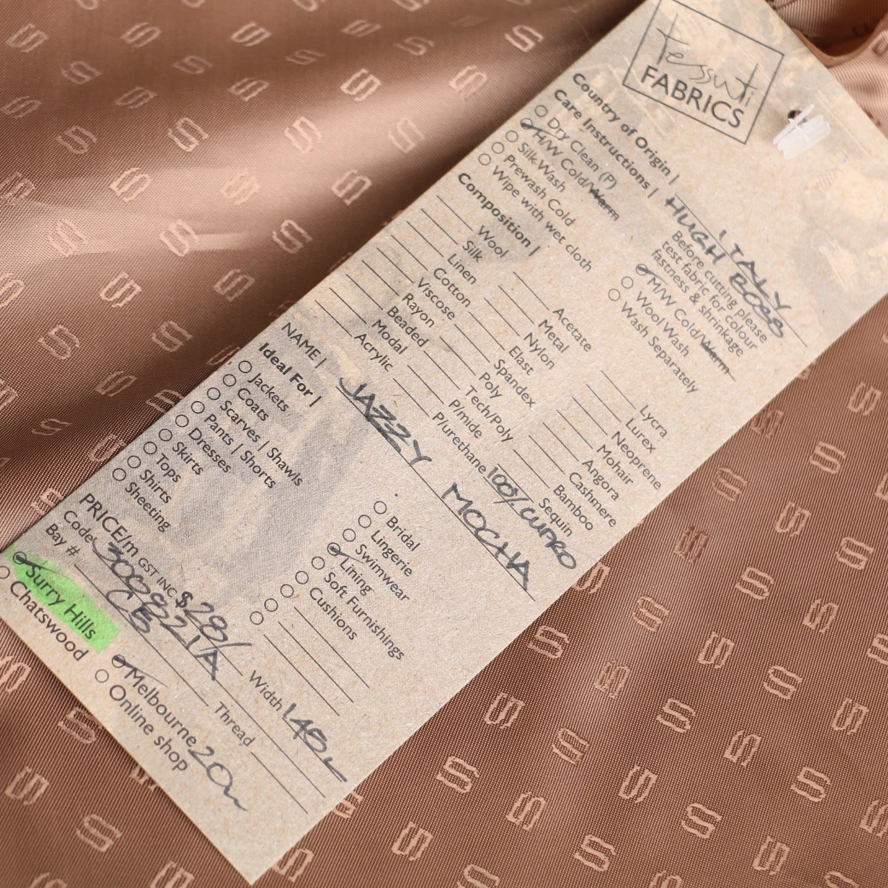 Italian designer end mocha brown embossed 100% cupro fancy lining.