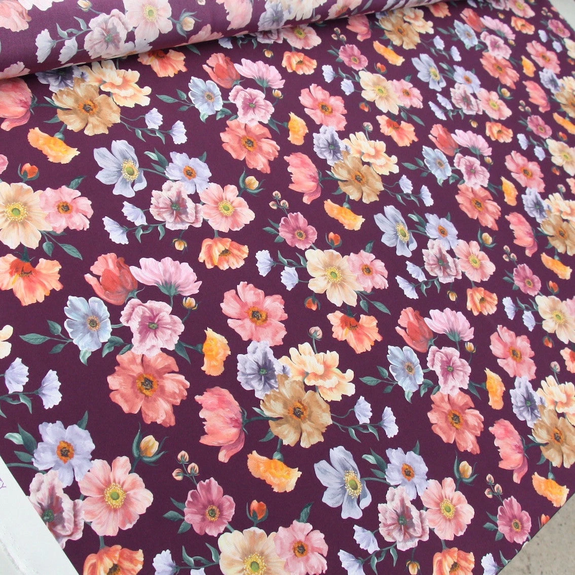 Jessica’s Picnic is an oil-painted multidirectional print, inspired by afternoons spent in the British countryside. It features cosmos, dog rose and carnations.