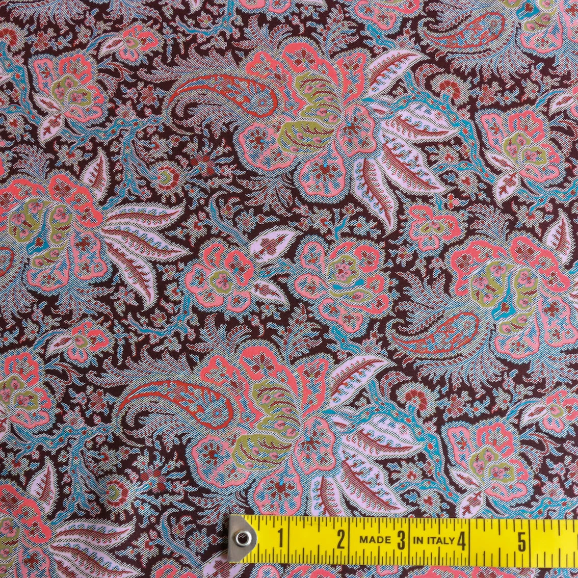 Liberty has a beautiful collection of 19th century paisley style archive designs, which have always provided inspiration for our designers. This beautifully coloured and carefully reconstructed botanical paisley is reminiscent of traditional Kashmir scarves and block- printed Indian textiles. Its floating garden is adorned with luxurious flowers, decorated leaves and feathery fronds.