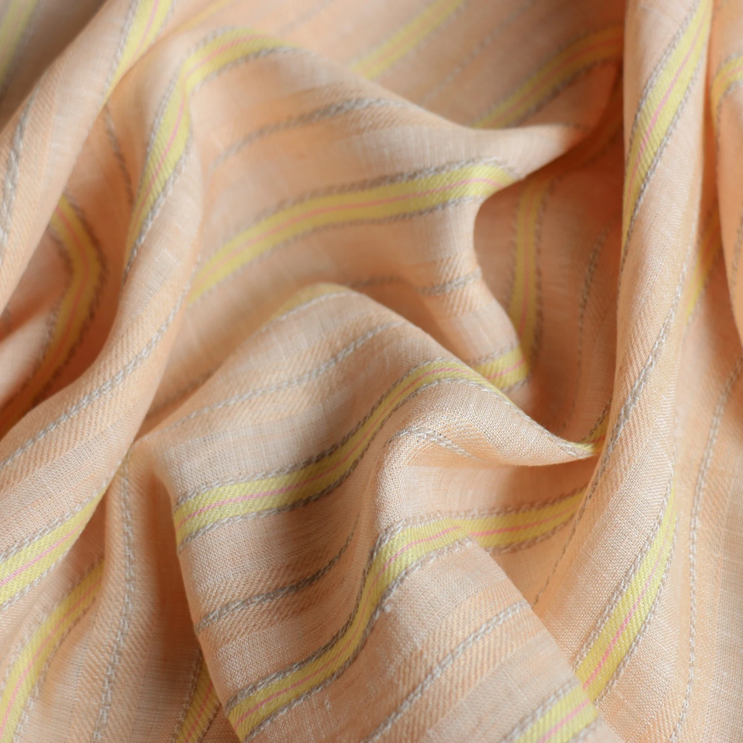 Italian peach/lemon/pink striped 100%Â linen