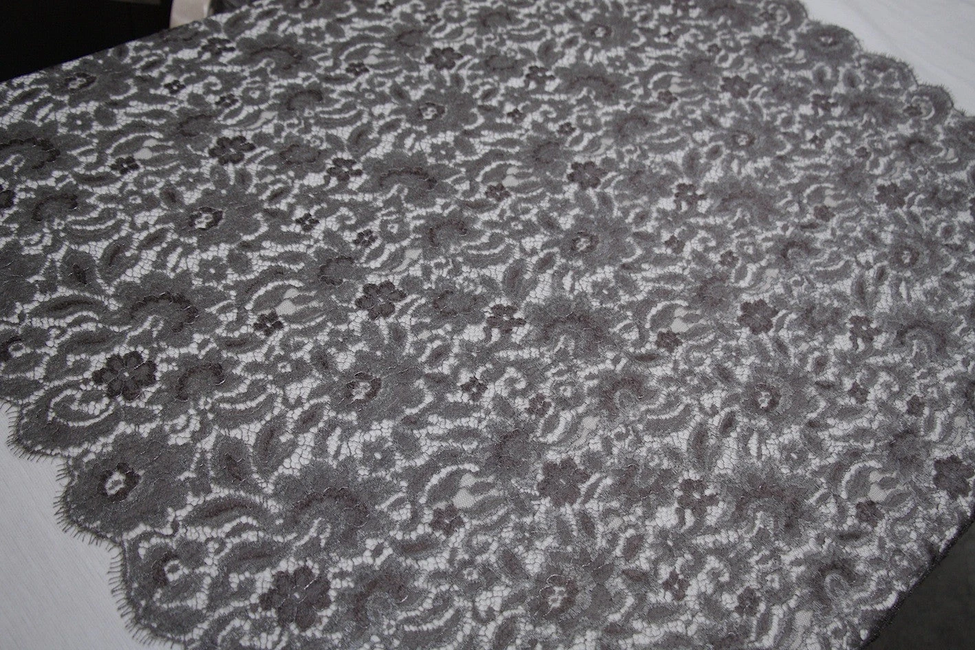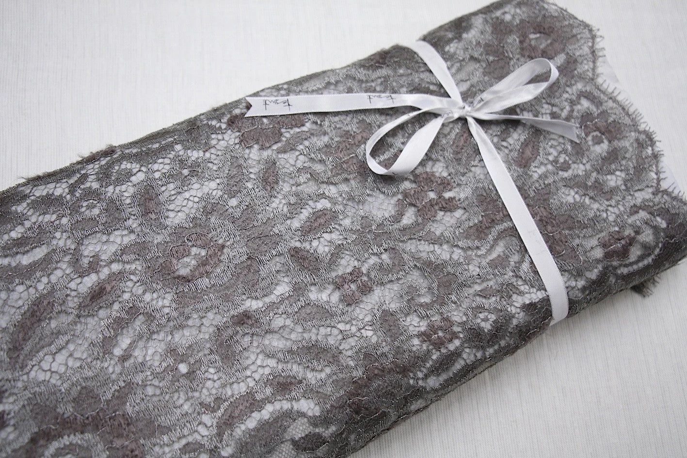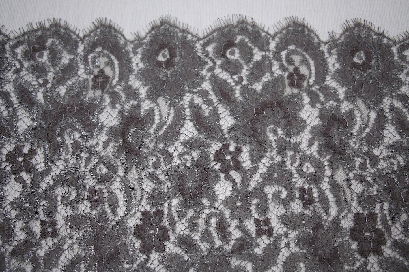 French 56% polyamide 11% poly metal 33% viscose coffee/silver lace