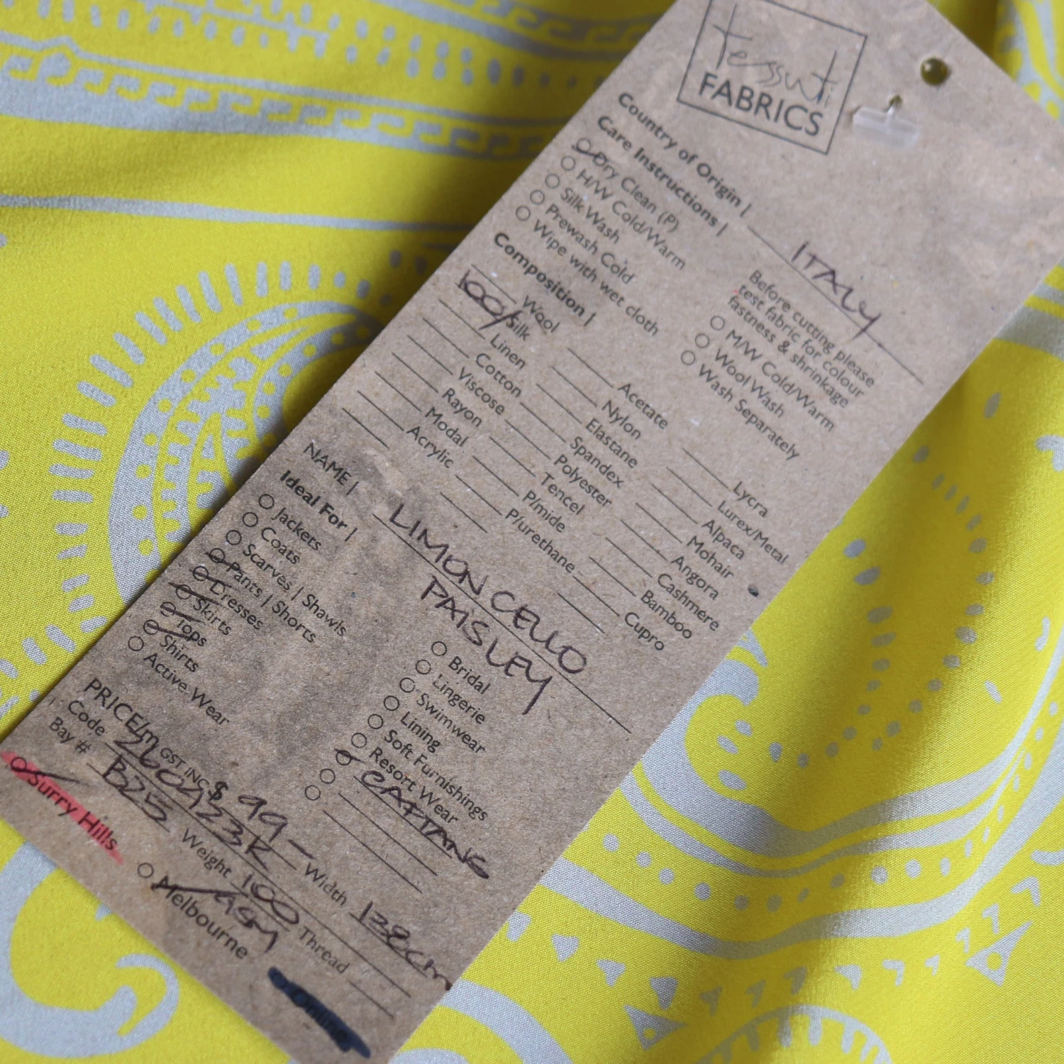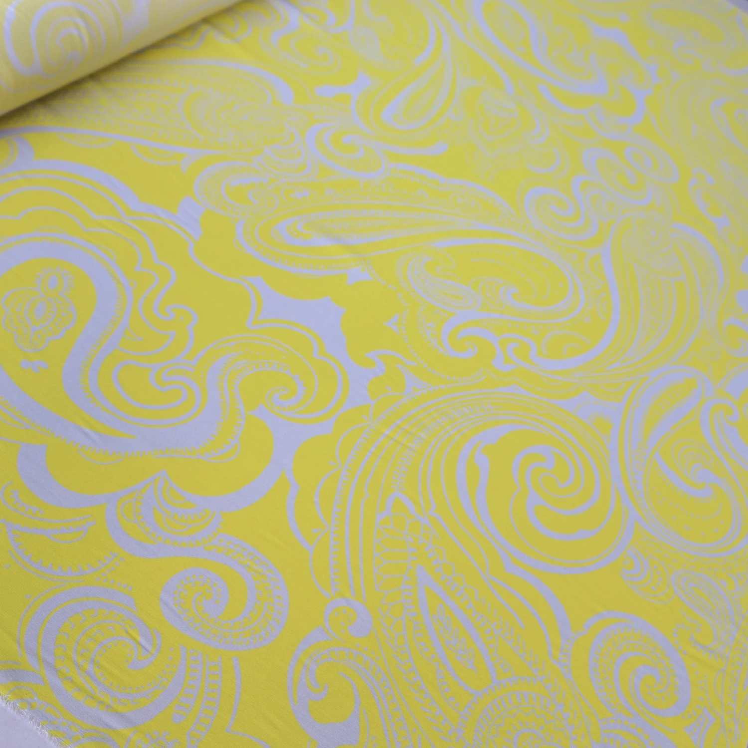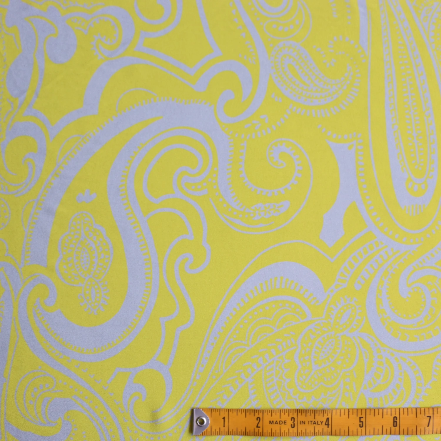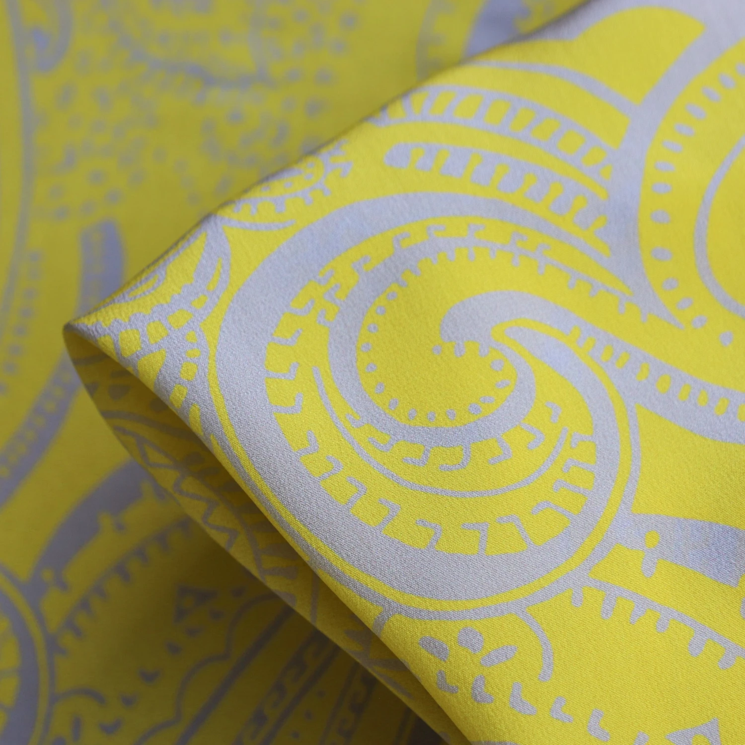 Italian designer yellow/oyster printed 100% silk crepe de chine
