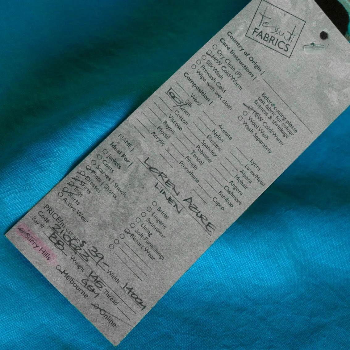 Azure turquoise medium weight vintage washed 100% linen